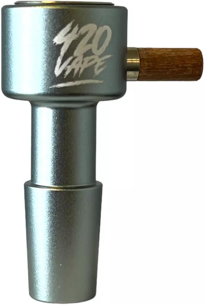 Stalowy cybuch do bonga 420VAPE z wyciąganym sitkiem szlif 14.5 mm Cybuch 420VAPE do fajki wodnej. Wykonany z wysokiej jakości stali nierdzewnej. Zaopatrzony w osobne, wyciągane sitko oraz odpinany, drewniany uchwyt. Szlif: 14.5 mm