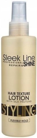 Stapiz Sleek Line Shine Loton Do Układania Włosów Spray 200 ml Stapiz Sleek Line Shine Loton to profesjonalny spray do układania włosów, który zapewnia długotrwałe utrwalenie oraz intensywny połysk. Jego zaawansowana formuła łączy w sobie właściwości stylizujące i pielęgnacyjne, co sprawia, że jest idealnym rozwiązaniem do codziennego użytku. Spray zapewnia nadzwyczajną gładkość włosów, redukując efekt puszenia, a jednocześnie nie obciąża pasm. Odpowiedni dla każdego rodzaju włosów, Stapiz Sleek Line Shine pomaga uzyskać efekt zdrowych, lśniących włosów, które łatwo się stylizują. Dlaczego warto wybrać Stapiz Sleek Line Shine Loton? Niezrównany połysk: Spray nadaje włosom naturalny, intensywny blask, bez efektu tłustości. Utrwalenie i kontrola: Zapewnia długotrwałe utrwalenie, utrzymując fryzurę w perfekcyjnej formie przez cały dzień. Zredukowanie puszenia: Dzięki właściwościom wygładzającym, redukuje efekt puszących się włosów, zapewniając gładkość. Ochrona przed wilgocią: Spray chroni włosy przed wilgocią i zmiennymi warunkami atmosferycznymi. Lekka formuła: Nie obciąża włosów, pozwalając na swobodne ich układanie i modelowanie. Profesjonalna jakość: Idealny do stosowania zarówno w salonach fryzjerskich, jak i w domowych warunkach. Najważniejsze cechy produktu: Nadaje intensywny połysk i naturalny blask włosom. Długotrwałe utrwalenie fryzury, utrzymujące kształt przez cały dzień. Redukuje puszenie i elektryzowanie włosów, wygładzając ich powierzchnię. Ochrona przed wilgocią i zmieniającymi się warunkami atmosferycznymi. Bez obciążania włosów: Lekka formuła, która nie powoduje efektu przetłuszczenia. Szerokie zastosowanie: Doskonały do wszystkich typów włosów. Sposób użycia: Wstrząśnij butelką przed użyciem. Spryskaj równomiernie suche lub wilgotne włosy, trzymając spray w odległości około 15-20 cm od głowy. Stylizuj włosy zgodnie z pożądanym efektem. Dla uzyskania jeszcze lepszego efektu, można używać w połączeniu z innymi produktami z linii Stapiz Sleek Line.Pojemność: 200ml