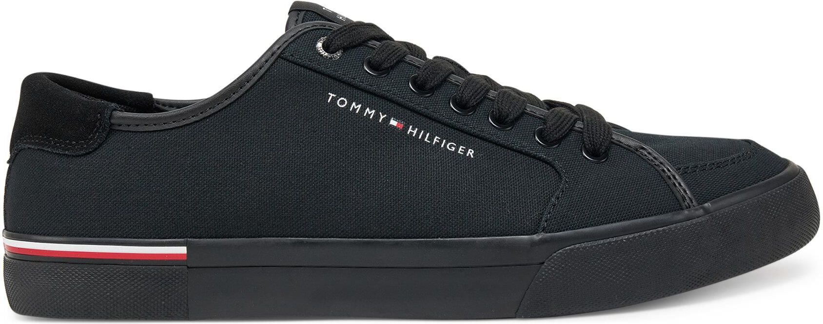 Czarne tenisówki męskie Tommy Hilfiger to kwintesencja klasyki i wygody w sportowym wydaniu. Wykonane z wysokiej jakości materiału włókienniczego, gwarantują komfort noszenia przez cały dzień. Uniwersalny czarny kolor sprawia, że doskonale uzupełnią każdą stylizację – zarówno casualową, jak i bardziej sportową. Postaw na niezawodny styl i jakość, które są znakiem rozpoznawczym marki Tommy Hilfiger. To obuwie, które łączy elegancję z funkcjonalnością, idealne na co dzień!