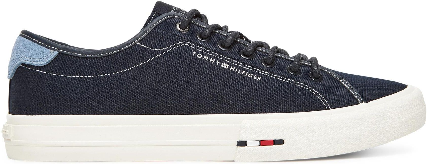 Podkreśl swój casualowy styl z męskimi tenisówkami marki Tommy Hilfiger! Wykonane z materiału tekstylnego, są lekkie i przewiewne, co zapewnia komfort noszenia przez cały dzień. Klasyczny okrągły nosek i sznurowanie podkreślają ich uniwersalny charakter, pasujący do wielu codziennych stylizacji. To idealny wybór dla mężczyzn ceniących wygodę oraz ponadczasowy design. Wzbogać swoją garderobę o te stylowe buty i ciesz się swobodą każdego kroku!