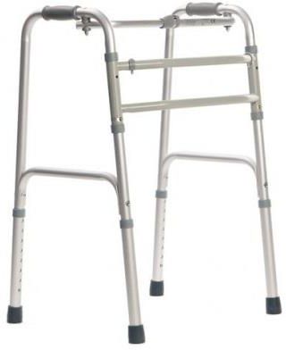 Vital Care Balkonik dwufunkcyjny ułatwia pionizację i poruszanie się. Przeznaczony jest dla osób o obniżonej sprawności fizycznej z zaburzeniami motorycznymi lub z lekkimi dysfunkcjami kończyn dolnych. Cechy produktu: wysokość regulowana skokowo co 2,5 cm składana rama wzmocnione połączenia ergonomiczne uchwyty, idealnie dopasowują się do dłoni nóżki posiadają gumowe zakończenia, które skutecznie zabezpieczają przed poślizgnięciem się łatwy sposób zablokowania funkcji kroczącej kolor: srebrny Parametry produktu: szerokość: 54cm wysokość: 82-99 cm waga: 2,5kg maksymalne obciążenie: 110kg Nr referencji producenta: VCBP0031 model 2FSD Użytkowanie produktu W celu przemieszczenia się należy przesunąć balkonik obiema dłońmi do przodu, a następnie dostawić kończyny dolne. Nie zaleca się korzystania z balkonika w przypadku przeciwwskazań do pionizacji, urazów i dysfunkcji kończyn górnych. Balkonik posiada konstrukcję składaną co ułatwia jego transport i przechowywanie. Aby go złożyć należy w pierwszej kolejności odblokować funkcję składania przekładając bolce blokady na wzmocnienie przednie. Następnie należy wcisnąć przycisk, chwilę go przytrzymując. Szczegółowa instrukcja znajduje się w załącznikach poniżej. Produkt objęty jest gwarancją producenta na okres 30 miesięcy (2,5 roku). Treść i warunki znajdują się w załącznikach poniżej.