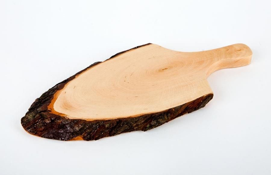Deska drewniana do serwowania i podawania potraw. Każda deska jest inna i wyjątkowa. Łatwo utrzymać ją w czystości. Deska wykonana jest zdrewna olchy europejskiej. Hit sezonu.Wyróżnia się wiele rodzajów desek. O wyborze tych poszczególnych decyduje ich przeznaczenie oraz wygląd i estetyka. Najbardziej powszechną jest deska drewniana – doskonale nadaje się ona do kontaktu z żywnością. Można ją z powodzeniem użytkować przez wiele lat, bez ryzyka utraty walorów estetycznych i użytkowych. Dla dłuższej żywotności deski drewnianej zaleca się okresowe stosowanie nieskomplikowanych zabiegów takich jak zaimpregnowanie jej dowolnym olejem jadalnym. Raz na czas można zastosować gruntowne czyszczenie za pomocą soli i cytryny. Sól posypuje się na powierzchni deski, a połówką cytryny wykonuje się ruch przemywania, rozcierając sól po desce. Potem należy wszystko spłukać wodą i osuszyć deskę. Taki zabieg pozwoli pozbyć się zapachów, które czasem mogą nagromadzić się na drewnie. Nie stosować w zmywarkach, piekarnikach oraz kuchenkach mikrofalowych.