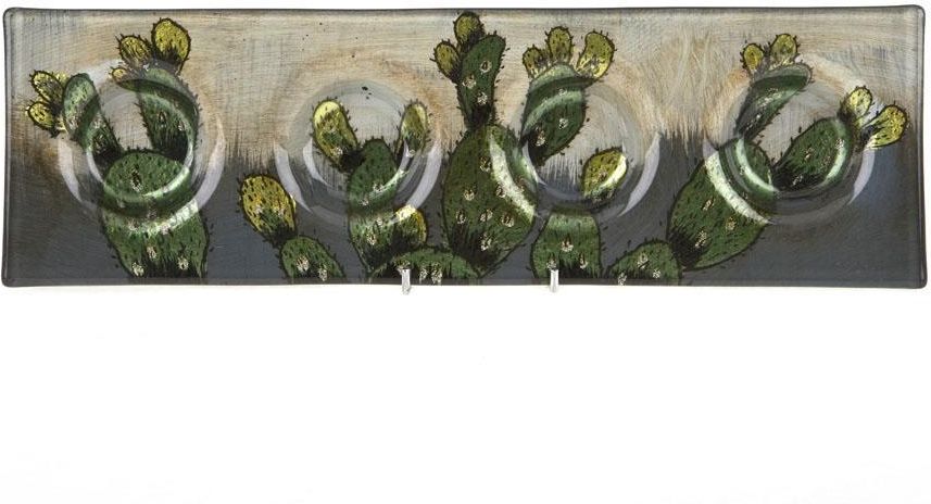 Podstawka ozdobna świecznik 3798 kaktusy 4 miejsca Ręcznie malowana, szklana podstawka ozdobna. Stanowi bardzo praktyczny element dekoracji domu. Doskonały dodatek zarówno do wnętrz klasycznych jak i nowoczesnych. Udekorujesz nią stół, ławę, komodę czy parapet. Generalnie będzie wyglądać świetnie …