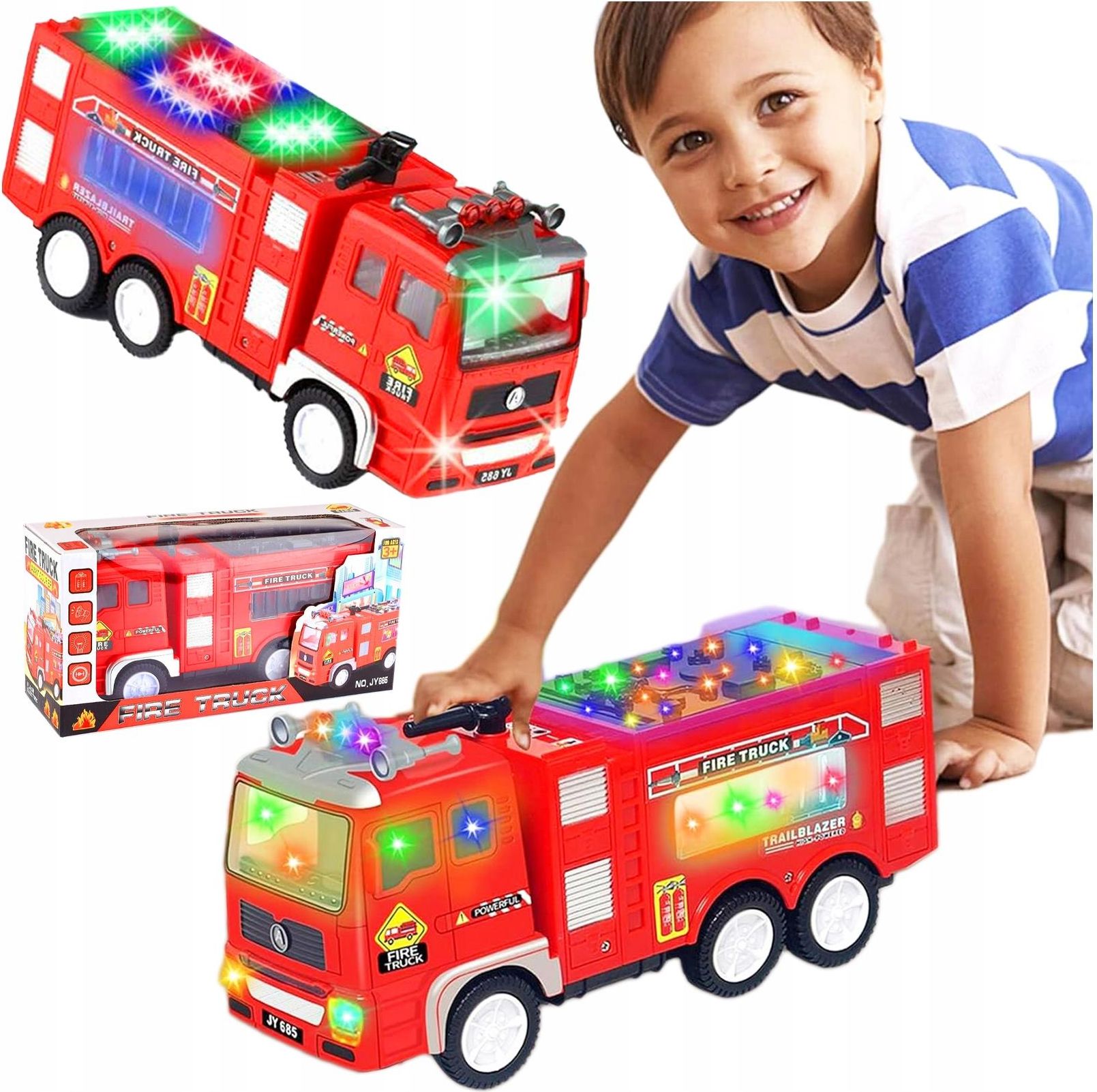 Wóz STRAŻACKI STRAŻ POŻARNA auto SAMOCHÓD jeżdżący grający DŹWIĘKI ŚWIATŁA - Interaktywny Wóz Strażacki dla Dzieci 3+Rozpal wyobraźnię swojego dziecka i podaruj mu godziny ekscytującej zabawy! To niezwykły wóz strażacki, który dzięki efektom świetlnym i dźwiękowym przeniesie malucha prosto na akcję ratunkową!Efektowne światła LED 4D – kolorowe iluminacje, które robią wrażenie nawet w ciemności.Realistyczne dźwięki syreny – jak prawdziwa straż pożarna w akcji!System "Bump & Go" – pojazd sam zmienia kierunek po napotkaniu przeszkody. Koniec z nudą!Edukacja przez zabawę – uczy dzieci przyczyny i skutku oraz rozwija motorykę.Solidna konstrukcja – trwałe materiały odporne na dziecięce testy.Bezpieczny rozmiar – idealny dla małych rączek, bez ostrych krawędzi.Idealny prezent dla każdego małego bohatera, który marzy o ratowaniu świata!Dla dzieci od 3. roku życiaZasilanie: 3x baterie AA (brak w zestawie)NAJWAŻNIEJSZE CECHY:Spektakularne światła LED 4D – efekty, które robią show.Realistyczne dźwięki syreny strażackiej – jeszcze więcej emocji.Automatyczna zmiana kierunku jazdy – technologia "Bump & Go".Solidna i trwała konstrukcja – odporna na intensywną zabawę.Bezpieczne materiały – certyfikowane, nietoksyczne, bez ostrych krawędzi.Rozwój przez zabawę – wspiera zdolności poznawcze i manualne.Idealny rozmiar – wygodny dla małych rączek.Jest wyposażony w czujnik Bump & Go, który automatycznie wyrównuje koła i umożliwia zmianę kierunku, kiedy na jego drodze pojawi się przeszkoda.DLACZEGO WARTO?Idealny pomysł na prezent dla chłopców i dziewczynek od 3 lat.Zachwyci fanów straży pożarnej i pojazdów specjalnych.Zapewni godziny angażującej i kreatywnej zabawy.PARAMETRY TECHNICZNE:Produkt: Interaktywny wóz strażacki FireFlashEfekty: Światła LED 4D + dźwięki syrenyMechanizm jazdy: Automatyczny "Bump & Go"Wiek dziecka: 3+Wymiary: ok. 20 x 9 x 8 cmZasilanie: 3 x bateria AA (brak w zestawie)Materiał: Tworzywo ABS, bezpieczne dla dzieciKolor: Czerwony z detalami strażackimi
