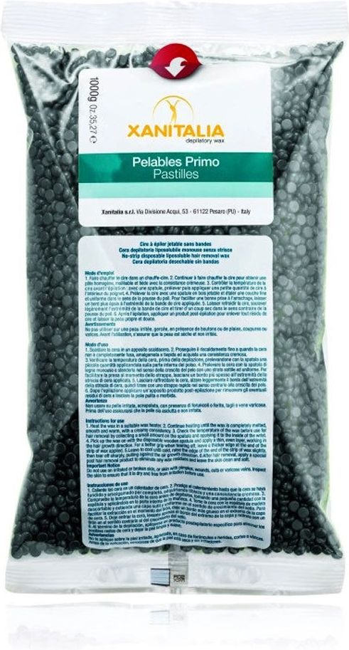 Xanitalia Wosk Do Depilacji Granulki Nera Black 1000g Wosk perełkowy brazylijski Xanitalia topi się w niskiej temperaturze, można go stosować na małych i dużych obszarach, a także usuwać bezpośrednio bez użycia plastrów do depilacji, w praktyczny, szybki i niemal bezbolesny sposób, ponieważ wosk wchłania jedynie włoski i nie przykleja się do skóry jak tradycyjne woski. Idealny dla skóry wrażliwej, jest skuteczny nawet w przypadku bardzo krótkich włosków, przyjemnie nawilży i zmiękczy skórę , zapewniając długotrwały efekt usuwania włosków nawet do 6 tygodni. SPOSÓB UŻYCIA Oczyść skórę za pomocą balsamu Pre-Wax, aby usunąć resztki sebum. Podgrzej wosk w podgrzewaczu do wosku lub rondelku w temperaturze około 40°C, aż osiągnie kremową konsystencję. Przed depilacją sprawdź temperaturę wosku, nabierając niewielką ilość szpatułką i nakładając ją na wewnętrzną stronę nadgarstka. Nabierz wosk szpatułką i rozprowadź go zgodnie z kierunkiem wzrostu włosów cienką, równomierną warstwą. Można go również rozprowadzać wielokierunkowo. Aby ułatwić chwyt podczas odrywania, zaleca się pozostawienie grubszej krawędzi na końcu nałożonego paska wosku. Pozostaw wosk do ostygnięcia (maksymalnie 10 sekund), lekko unieś krawędź paska z woskiem i zdejmij go zdecydowanym ruchem. Nałóż na depilowany obszar olejek lub mleczko po depilacji, aby usunąć pozostałości wosku.