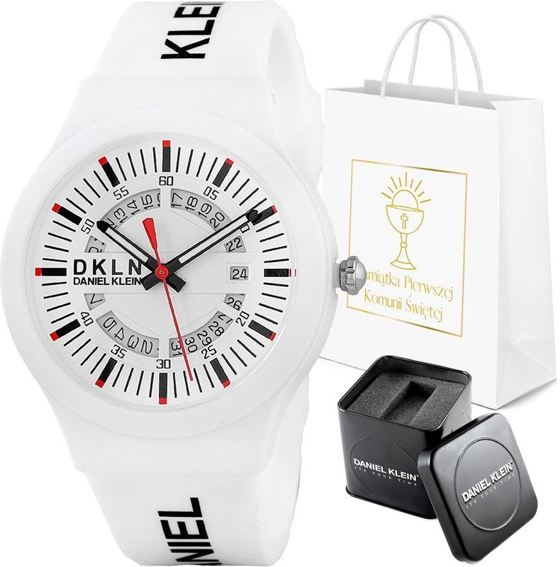 Zegarek męski Daniel Klein 12275 Już dziś wybierz swój nowy, sportowy, funkcjonalny, a co najważniejsze klasyczny zegarek, który sprawdzi się bez względu na okazję. Zegarek ten wyposażony został w niezawodny mechanizm kwarcowy, zapewniający wieloletnią żywotność oraz precyzyjne odmierzanie czasu. Nowoczesna tarcza z datownikiem zapewnia przejrzysty i czytelny wygląd. Koperta zegarka połączona została z paskiem z tworzywa sztucznego. Wodoszczelność 30M oznacza że, zegarek jest odporny na zachlapania. Czasomierze te wyprodukowane są z bezpiecznych materiałów, które nie tylko nadają się dla osób z wrażliwą skórą, ale i również dla alergików. Zegarek sprawdzi się jako prezent, który zachwyci swoim wyglądem, funkcjonalnością oraz będzie stanowił wartościową pamiątkę. Nasza firma oferuje również dodatkowo płatną usługę grawerowania, dzięki której możemy podarować bliskiej nam osobie pamiątkę w formie dedykacji na zegarku, co stanowi niepowtarzalny i wyjątkowy upominek. Mechanizm: W zegarku osadzony został mechanizm kwarcowy. Pasek/bransoleta: Tworzywo sztuczne. Koperta: Tworzywo sztuczne. Szkiełko: Mineralne. Wodoszczelność: Wodoszczelność na poziomie 30m. (3ATM) oznacza, że zegarek jest odporny na przypadkowe zachlapanie. Kolorystyka: Tarcza: kolor srebrny. Wskazówki: kolor czarno- biały, sekundowa: kolor czerwony, Koperta: kolor biały, Pasek: kolor biały. Gwarancja: 24 miesiące od daty zakupu. Wymiary: koperta: szer. 42 mm, gr. 11 mm, wys. 50mm szerokość paska: 22 mm, maksymalne zapięcie: ok. 21 cm Funkcje: Datownik, wyświetla aktualny dzień miesiąca. Co jest w zestawie? Oryginalny zegarek Daniel Klein. ✔ Firmowe pudełko Daniel Klein ✔ Torebka producenta ✔ Gwarancja 24 miesiące ✔ Dowód zakupu