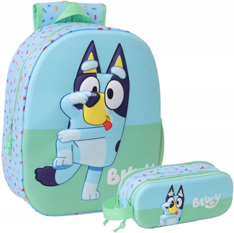 • Zestaw Safta Plecak Dziecięcy 3D + Piórnik 3D Dwukomorowy Bez Wyposażenia Bluey