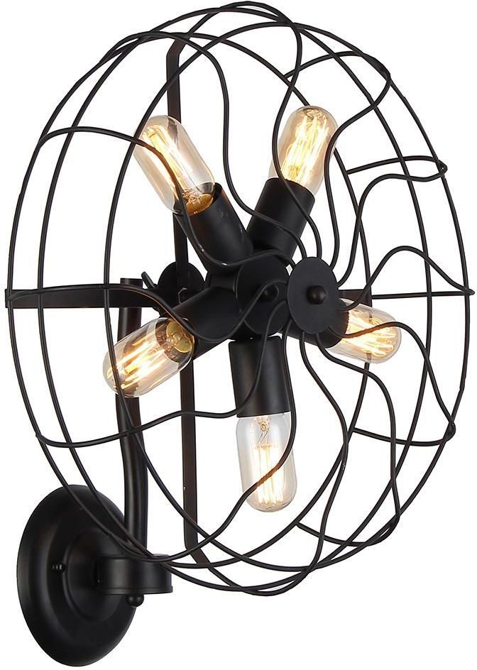 Ścienna lampa pokojowa Fan industrial druciana czarna Kolor: czarny Materiał: metal Wysokość [cm]: 47 Szerokość [cm]: 47 Regulacja wysokości: Brak Regulacja kąta światła: Brak Waga [kg]: 3,3 Ilość żarówek w lampie: 5 Źródło światła w komplecie: Brak Rodzaj żarówki | gwint: E27 Maksymalna moc …