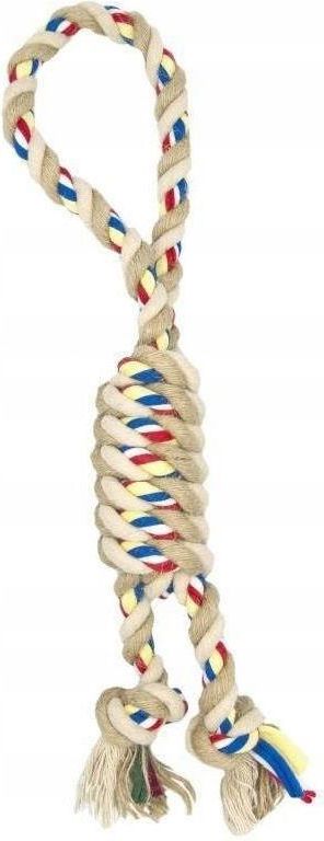 BARRY KING Sznur Splątany z Pętlą z Juty Doskonała Zabawka dla Twojego Psa BARRY KING sznur splątany z pętlą z juty to nie tylko zabawka, ale również narzędzie wspomagające trening i dbałość o zdrowie jamy ustnej Twojego pupila. Wykonana z naturalnej juty, jest nie tylko trwała, ale także bezpieczna dla psa. Dzięki swojej konstrukcji, sznur świetnie sprawdza się jako nagroda podczas szkoleń, zachęcając psa do aktywnej zabawy. Korzyści dla Zdrowia Jego Jamy Ustnej Jednym z głównych atutów tego produktu jest jego wpływ na higienę jamy ustnej psa. Plecionka, z której wykonany jest sznur, skutecznie oczyszcza zęby i masuje dziąsła podczas zabawy. Dzięki temu możesz dbać o zdrowie zębów swojego pupila w sposób przyjemny dla niego. Szczegóły Produktu Materiał: Naturalna juta Rozmiar: 34 cm Waga: 125g Zabawka BARRY KING sznur splątany z pętlą z juty to doskonały wybór dla każdego opiekuna psa, który chce zapewnić swojemu pupilowi nie tylko rozrywkę, ale także dbać o jego zdrowie. Jej trwałość i bezpieczeństwo sprawią, że będzie służyć przez długi czas, a Twojemu psu dostarczy wiele godzin zabawy.