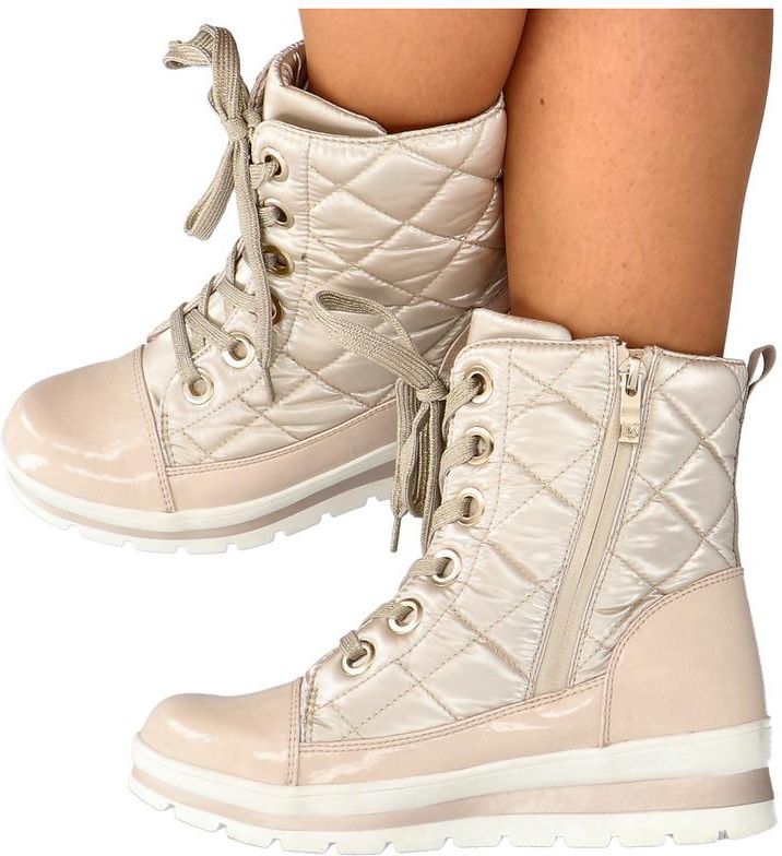 Wygodne damskie śniegowce z najnowszej kolekcji CAPRICE jesień/zima. Buty wykonane są z innowacyjnego materiału posiadającego technologię TEX utrzymującą komfortowe ciepło nawet w ekstremalnych warunkach. Buty dla zmarzluchów, w nich zawsze będzie Ci ciepło. Śniegowce zostały wykończone wewnątrz miękką tkaniną ocieplającą zapewniającą dodatkowy komfort. Posiadają charakterystyczną dla marki Caprice wygodną miękką wkładkę oraz antypoślizgowy spód. Podeszwa solidna, jej główny składnik to wysokogatunkowe tworzywo. Śniegowce posiadają praktyczne wiązanie oraz zamek z boku, dzięki czemu są wyjątkowo wygodne w użytkowaniu. Obuwie wiązane, dzięki czemu można dopasować but do tęgości stopy przy pierwszym założeniu. W modelu zastosowano technologie TEX - wodoszczelność ze zoptymalizowaną oddychalnością. Buty bardzo ładnie układają się na stopie i mimo grubszej podeszwy są bardzo lekkie. Stylowe śniegowce w odcieniu modnego, jasnego beżu to doskonałe uzupełnienie wielu stylizacji.