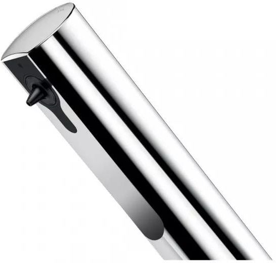 elektroniczny, stojący dozownik mydła dozownik mydła w płynie, mydła w piance lub żelu wodno-alkoholowego brak kontaktu z dłonią: automatyczna detekcja dłoni przez detektor na podczerwień wylewka z chromowanego Inoxu 304 pompa dozująca z ochroną przed marnowaniem mydła niezależna skrzynka elektroniczna i niezależny, wyjmowany zbiornik do montażu pod umywalką automatyczny dozownik mydła: zasilanie sieciowe z transformatorem 230/6 V do mydła w płynie na bazie roślinnej o maksymalnej lepkości 3 000 mPa·s lub specjalnego mydła w piance kompatybilny z żelem wodno-alkoholowym długość wylewki: 111 mm dostarczany ze zbiornikiem o pojemności 0,5 litra znak CE kolor: chrom