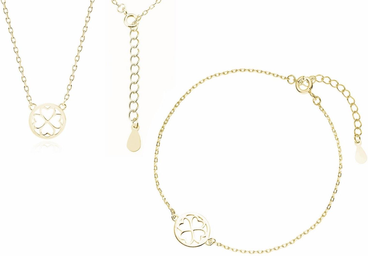 Delikatny pozłacany srebrny komplet celebrytka koniczynka kółko serduszko srebro 925 Z1922ZG Myszków