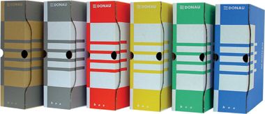 PUDŁO ARCHIWIZACYJNE 1000 KARTEK KARTONOWE FSC DONAU, ZIELONY Parametry produktu: Liczba sztuk w ofercie: 1 Marka: Donau Rodzaj: z pokrywą Stan: Nowy Typ: pudło archiwizacyjne * wykonane z trójwarstwowej tektury falistej typu B, bezkwasowej (pH ok. 7,5) * posiadają certyfikat FSC, który gwarantuje, że papier pochodzi z ekologicznie zarządzanych obszarów leśnych * składane – bardzo proste w montażu, mieszczą segregator * specjalny design umożliwia stawianie na krótszym lub dłuższym boku * 5 ścian opisowych, posiada 4 otwory: * dwa ułatwiają wyjmowanie dociążonego pudełka z pudła zbiorczego * kolejne dwa pozwalają na wkładanie/wyjmowanie zawartości bez konieczności zdejmowania pudełka z szafy/półki