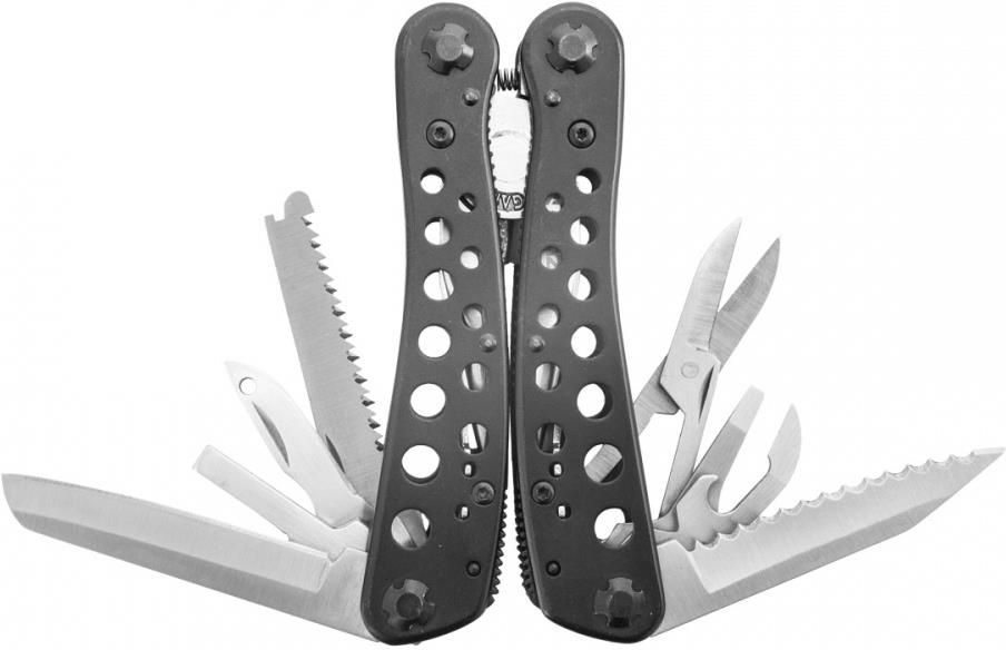 Multitool Ganzo G204 (265-039​) to lekkie i solidne narzędzie, z profilowaną rękojeścią z aluminium i karbowanymi brzegami. Taka budowa pozwala na precyzyjne prace bez obawy wypadnięcia narzędzia nawet gdy dłonie są wilgotne. Wykonane ze stali nierdzewnej 440C narzędzia są w pełni funkcjonalne i twarde. Niezbędna pozycja w wyposażeniu EDC ze względu na swoje zaawansowane funkcje. Duża funkcjonalność powoduje, że śmiało można zabrać go ze sobą nawet na rower. Posiada 12 najbardziej przydatnych funkcji wraz z zestawem 11 bitów, których można użyćw najbardziej potrzebnym momencie. Jego budowa pozwala na otworzenie wybranego narzędzia bez otwierania całego multitoola. Rękojeść wykonana jest z solidnego aluminium. Producent dołączył do zestawu kaburę z nylonu odporną na wilgoć. Funkcje: Kombinerki Przecinak do drutu Ostrze gładkie Ostrze ząbkowane Piła Nożyczki Otwieracz do butelek Otwieracz do puszek Wkrętak płaski Szydło Gniazdo na bity Komplet 11 bitów (5 bitów imbusowych, 3 bity płaskie, 3 bity krzyżakowe)