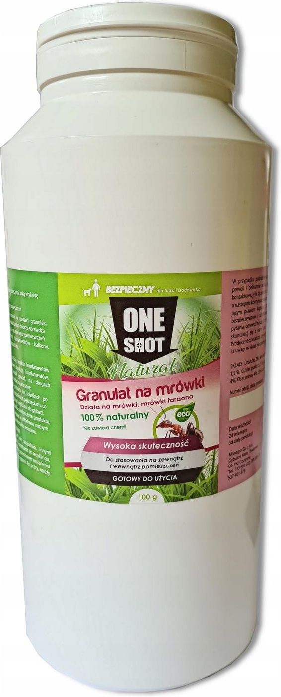 Granulat Proszek Natural Na Mrówki Oneshot 1000 Gr Jeśli szukasz skutecznego i bezpiecznego rozwiązania do zwalczania mrówek, Granulat Proszek Natural Na Mrówki Oneshot 1000 Gr to idealny wybór. Ten preparat jest niezwykle efektywny, a jego naturalna formuła sprawia, że jest bezpieczny dla ludzi i środowiska. Dzięki temu granulowi możesz szybko i skutecznie pozbyć się mrówek zarówno wewnątrz, jak i na zewnątrz pomieszczeń. Rodzaj szkodnika, zastosowanie i sposób działania Granulat Proszek Natural Na Mrówki Oneshot 1000 Gr jest przeznaczony do zwalczania mrówek, w tym mrówek faraona. Dzięki swojej postaci granulatu, jest bardzo prosty w użyciu i może być stosowany zarówno wewnątrz budynków, jak i na zewnątrz. Granulat należy wyłożyć na niewielkich tackach lub bezpośrednio na ścieżkach przemieszczania się owadów oraz przy wszelkich szczelinach i pęknięciach, które mogą być wejściami do gniazd. Efekty działania są zauważalne już po pierwszym użyciu. Sposób użycia i skuteczność Stosowanie Granulatu Proszku Natural Na Mrówki Oneshot jest bardzo proste i wygodne. Wewnątrz budynków wystarczy rozsypać niewielką ilość granulatu na ścieżkach przemieszczania się mrówek oraz przy wszelkich szczelinach i pęknięciach. Na zewnątrz budynków należy usunąć kamyki, gruz i liście, a następnie równomiernie rozsypać produkt wokół gniazd oraz na drogach przemieszczania się mrówek. Warstwa granulatu powinna być widoczna. Jeśli produkt zostanie zawilgocony, należy wyłożyć nową, świeżą porcję. Proces likwidacji mrowiska może trwać od 7 do 14 dni, ale daje pewność trwałego rozwiązania problemu. Bezpieczeństwo stosowania Granulat Proszek Natural Na Mrówki Oneshot jest bezpieczny dla ludzi i środowiska. Nie należy jednak stosować go bezpośrednio na trawniku ani roślinach. Produkt powinien być używany zgodnie z zaleceniami producenta, aby zapewnić maksymalną skuteczność i bezpieczeństwo. Dodatkowe informacje Poniżej znajdziesz najważniejsze cechy produktu: waga: 1000 g, producent: Mugga, postać: proszek, szybkie efekty działania, łatwość użycia. Podsumowanie Granulat Proszek Natural Na Mrówki Oneshot 1000 Gr to niezawodne rozwiązanie do zwalczania mrówek zarówno wewnątrz budynków, jak i na zewnątrz. Jego naturalny skład zapewnia bezpieczeństwo dla ludzi i środowiska, a łatwość użycia sprawia, że jest to produkt idealny dla każdego. Skuteczność preparatu potwierdzona jest przez wielu zadowolonych użytkowników.