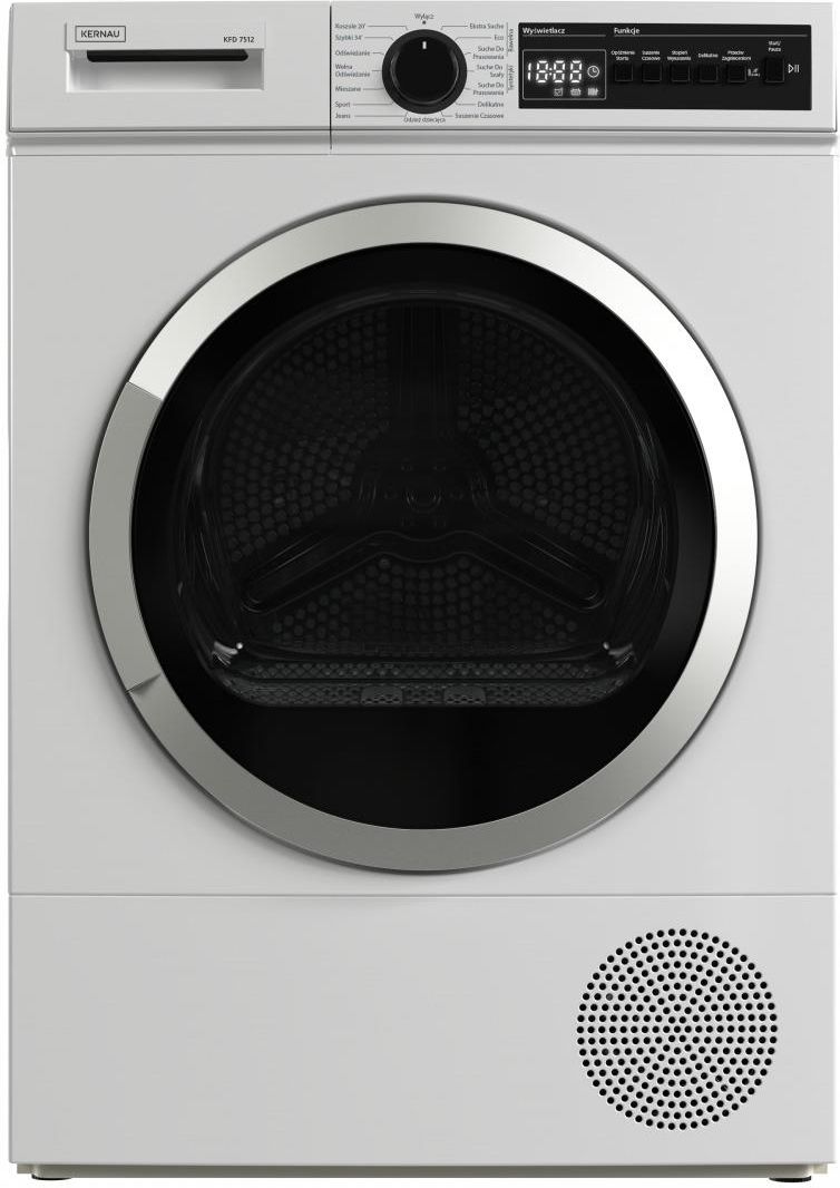 SUSZARKA KFD 7512 15 PROGRAMÓW SUSZENIA Model KFD 7512 oferuje aż 15 precyzyjnie dobranych programów suszenia, w tym praktyczne opcje takie jak Bawełna Eco, Odzież dziecięca, Syntetyki suche do szafy czy Odświeżanie. Dzięki temu masz pewność, że każda tkanina – od codziennych ubrań po delikatne dziecięce ciuszki – będzie perfekcyjnie wysuszona i gotowa do użycia. WSKAŹNIK POZOSTAŁEGO CZASU SUSZENIA Czytelny wskaźnik pozostałego czasu suszenia umożliwia bieżące śledzenie przebiegu cyklu i lepsze zarządzanie codziennym harmonogramem. Dzięki niemu z łatwością zaplanujesz kolejne czynności – bez zgadywania i bez pośpiechu. REWERSYJNE RUCHY BĘBNA Ruchy rewersyjne bębna minimalizują plątanie tkanin, dbają o równomierne suszenie i sprawiają, że wyjmowanie prania staje się szybkie i bezproblemowe. Dzięki temu Twoje ubrania zachowują lepszy wygląd i są gotowe do noszenia od razu po wyjęciu z suszarki. SYSTEM ANTYZAGNIECENIOWY Funkcja antyzagnieceniowa w suszarce bębnowej Kernau zapobiega powstawaniu zagnieceń, delikatnie poruszając bębnem po zakończeniu cyklu. Dzięki temu ubrania pozostają gładkie, łatwe do prasowania lub gotowe do założenia od razu po wyjęciu z urządzenia. REGULACJA STOPNIA WYSUSZENIA Dzięki regulacji stopnia wysuszenia odzieży z łatwością dopasujesz efekt suszenia do swoich potrzeb – od lekko wilgotnych ubrań idealnych do prasowania, po całkowicie suche, gotowe do schowania w szafie. OPÓŹNIENIE STARTU Funkcja opóźnienia startu umożliwia ustawienie dogodnej pory rozpoczęcia suszenia, by dostosować cykl do swojego rytmu dnia i korzystać z tańszych godzin taryfowych. SYSTEM ODPROWADZANIA SKROPLIN Dzięki systemowi odprowadzania skroplin masz pełną swobodę instalacji suszarki. Skropliny mogą być automatycznie odprowadzane do kanalizacji, co eliminuje konieczność ręcznego opróżniania zbiornika. SPECYFIKACJA TECHNICZNA FUNKCJONALNOŚĆ MAKSYMALNY ZAŁADUNEK :7 KG TYP SILNIKA: STD TYP: KONDENSACYJNA Z POMPĄ CIEPŁA STEROWANIE: ELEKTRONICZNE WYŚWIETLACZ: TAK BĘBEN GALWANIZOWANY :TAK LICZBA PROGRAMÓW: 15 DŁUGOŚĆ PRZEWODU ELEKTRYCZNEGO: 160 CM DŁUGOŚĆ WĘŻA SPUSTOWEGO: 165 CM BEZPIECZEŃSTWO ALARM NAPEŁNIENIA ZBIORNIKA NA WODĘ: TAK BLOKADA RODZICIELSKA: TAK WSKAŹNIK BLOKADY RODZICIELSKIEJ: TAK REGULOWANE NÓŻKI: TAK INFORMACJA O KONIECZNOŚCI OPRÓZNIENIA POJEMNIKA NA WDOĘ: TAK INFORMACJA O KONIECZNOŚCI CZYSZCZENIA FILTRA KŁACZKÓW: TAK INFORMACJA O KONIECZNOŚCI CZYSZCZENIA WYMIENNIKA CIEPŁA: TAK WSKAŹNIK INFORMUJĄCY O AKTYWACJI FUNKCJI PRZECIW ZAGNIECENIOM: TAK MOŻLIWOŚĆ DEZAKTYWACJI SYGNAŁÓW DŹWIĘKOWYCH: TAK DODATKOWE FUNKCJE SYSTEM ODPROWADZANIA SKROPLIN: TAK REWERSYJNE RUCHY BĘBNA: TAK MOŻLIWOŚĆ PODŁĄCZENIA DO SIECI KANALIZACYJNEJ W CELU ODPROWADZENIA WODY: TAK SYSTEM ANTYZAGNIECENIOWY TAK REGULACJA STOPNIA WYSUSZENIA ODZIEŻY: TAK SYGNAŁ DŹWIĘKOWY ZAKOŃCZENIA PROGRAMU: TAK OPÓŹNIENIE STARTU: TAK CZUJNIK WILGOTNOŚCI: TAK WSKAŹNIK POZOSTAŁEGO CZASU SUSZENIA: TAK WSKAŹNIK CZYSZCZENIA FILTRA: TAK PROGRAMY BAWEŁNA EKSTRA SUCHE: TAK BAWEŁNA ECO: TAK BAWEŁNA SUCHE DO PRASOWANIA: TAK SYNTETYKI SUCHE DO SZAFY: TAK SYNTETYKI SUCHE DO PRASOWANIA: TAK DELIKATNE: TAK SUSZENIE CZASOWE: TAK ODZIEŻ DZIECIĘCA: TAK JEANS: TAK SPORT: TAK MIESZANE: TAK WEŁNA ODŚWIEŻANIE: TAK ODŚWIEŻANIE: TAK SZYBKI 34 :TAK KOSZULE 20 : TAK PARAMETRY TECHNICZNE KLASA EFEKTYWNOŚCI ENERGETYCZNEJ: E ZUŻYCIE ENERGII NA 100 CYKLI SUSZENIA: 133 KWH ŻUŻYCIE ENERGII NA ROK: 244 KWH KLASA EFEKTYWNOŚCI SUSZENIA: C GŁOŚNOŚĆ PODCZAS PRACY (DB) :64 DB KLASA GŁOŚNOŚCI: B ZAŁADUNEK (KG): 7 KG CZAS TRWANIA PROGRAMU REFERNECYJNEGO (H) :03:23 MOC: 1000 W NAPIĘCIE: 220-240 V POBÓR ENERGII W TRYBIE STAND-BY STAND BY -> :0,50 W WYMIARY WYSOKOŚĆ: 845 - 855 MM SZEROKOŚĆ: 596 MM GŁĘBOKOŚĆ: 525 MM
