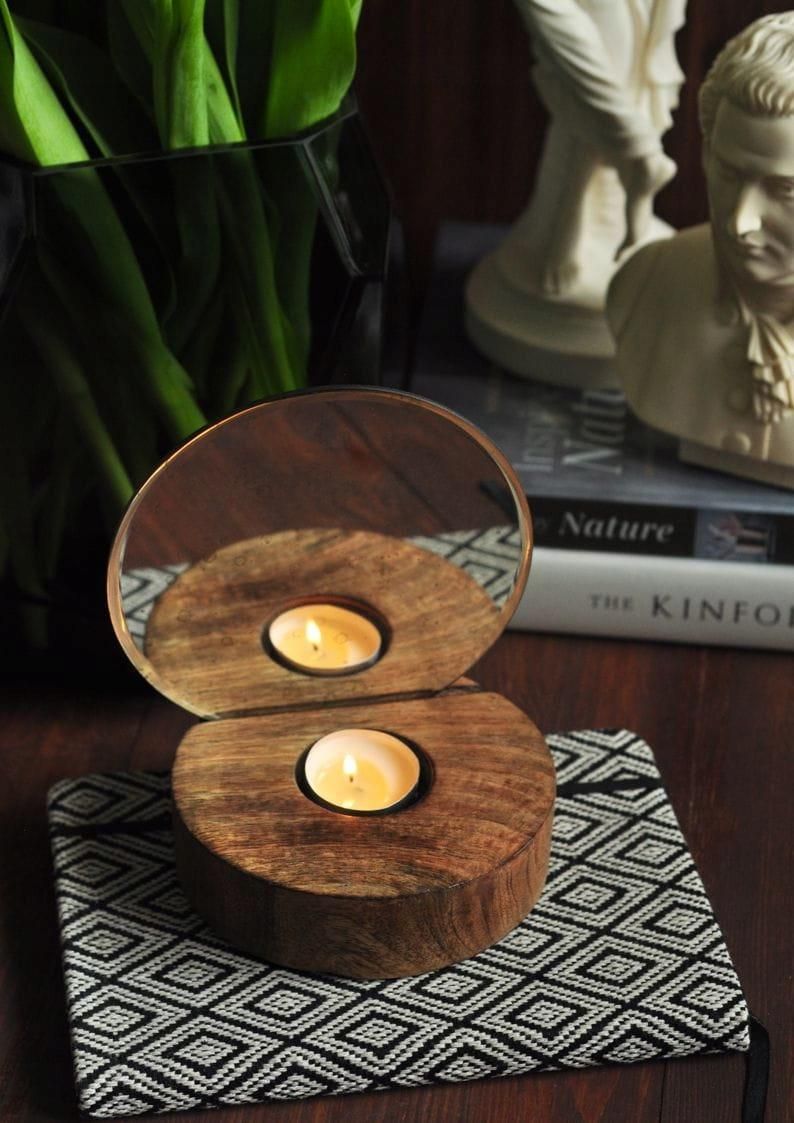 Kokon Home Świecznik Z Drewna Mango Lustrem Wood Mirror Myszków
