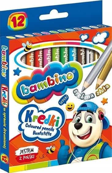 Kredki ołówkowe 12 kolorów w drewnianej oprawie CO WYRÓŻNIA NASZ PRODUKT WYJĄTKOWA TRWAŁOŚĆ⭐ - Glinka kaolinowa w drewnianej oprawie zapewnia odporność na złamania i długotrwałe użytkowanie. INTENSYWNE KOLORY⭐ - Nasycone pigmenty doskonale kryją powierzchnię, w tym ekskluzywne metaliczne odcienie złota i srebra. ERGONOMICZNY KSZTAŁT⭐ - Grube, wyważone kredki idealnie leżą w dziecięcej dłoni, wspierając prawidłowy rozwój motoryki. CERTYFIKOWANE BEZPIECZEŃSTWO⭐ - Produkt polski spełniający najwyższe europejskie normy bezpieczeństwa dla dzieci 3+. ROZBUDOWUJE KREATYWNOŚĆ I WYOBRAŹNIĘ! Te wyjątkowe kredki ołówkowe marki BAMBINO z glinką kaolinową w drewnianej oprawie charakteryzują się niezrównaną trwałością oraz odpornością na złamania. 12 intensywnych i nasyconych kolorów, w tym metaliczne złoto i srebro, pozwala na tworzenie żywych, szczegółowych rysunków i dodawanie wyjątkowego blasku każdej pracy artystycznej. WSPIERA ROZWÓJ UMIEJĘTNOŚCI MANUALNYCH! Grube, odpowiednio wyważone kredki idealnie dopasowują się do małej dłoni dziecka, zapewniając ergonomiczne i komfortowe użytkowanie. Miękka konsystencja sprawia, że doskonale nadają się do różnorodnych technik - od precyzyjnego rysowania, przez wypełnianie dużych płaszczyzn, aż po tworzenie płynnych przejść kolorystycznych. GWARANTUJE PEŁNE BEZPIECZEŃSTWO DZIECKA! Produkowane w Polsce zgodnie z rygorystycznymi normami europejskimi i krajowymi, kredki spełniają wymagania dyrektywy Parlamentu Europejskiego i Rady 2009/48/WE w sprawie bezpieczeństwa zabawek. Bezpieczne materiały i certyfikowana jakość pozwalają na spokojną zabawę bez trosk o zdrowie małego artysty. UŁATWIA CODZIENNE UŻYTKOWANIE! Łatwe do temperowania kredki z drewnianą oprawą zapewniają długotrwałe i wygodne tworzenie. Doskonale kryją powierzchnię, a ich konstrukcja gwarantuje równomierne nakładanie kolorów bez smug czy nierówności, co sprawia, że każda praca wygląda profesjonalnie i estetycznie. SPECYFIKACJA Stan: Nowy Kod producenta: 5903235000294 Rodzaj: ołówkowe Marka: Bambino Bohater / Bajka: brak Liczba sztuk w zestawie: 12 szt. Kolor: wielokolorowy Waga produktu z opakowaniem jednostkowym: 0.146 kg EAN (GTIN): 5903235000294 Płeć: chłopcy, dziewczynki