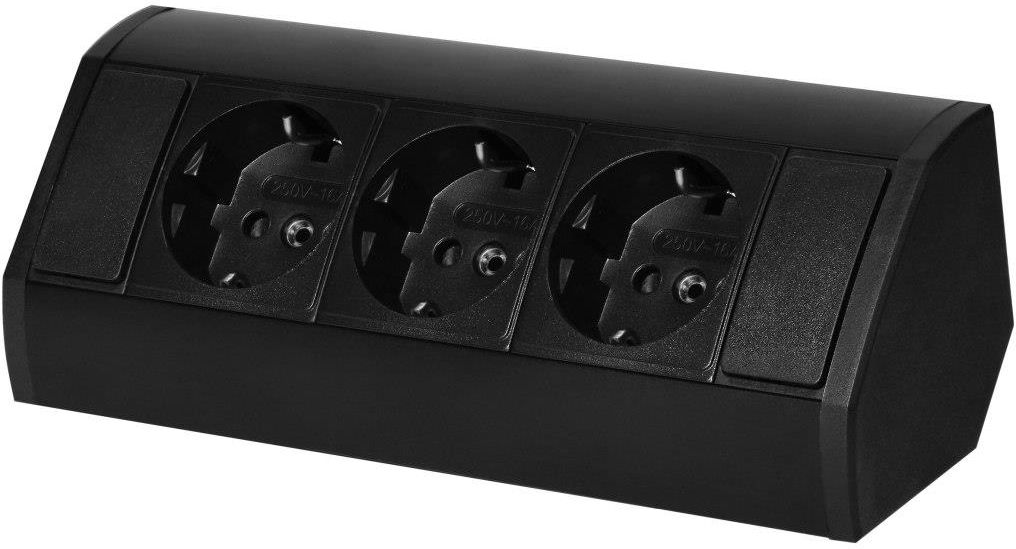 Gniazdo meblowe 3x2P+Z (Schuko), czarne