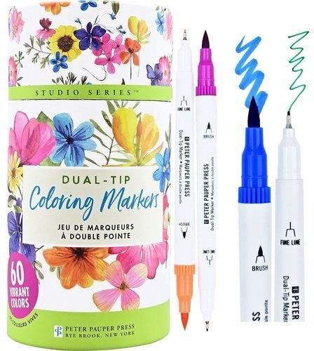 Peter Pauper Press Markery Dwustronne Dual-Tip 60 Kolorów. Brush Pen & Fine Line 0,4 Myszków