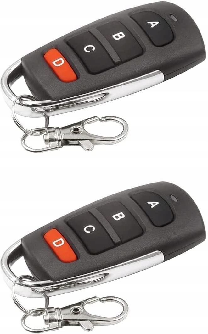 2 X Uniwersalny pilot zdalnego sterowania typu copy remote do urządzeń działających na częstotliwości 433,92 MHz (stały kod / fixed code). Idealny do bram garażowych, wjazdowych, rolet, alarmów, oświetlenia i innych systemów automatyki domowej. ✅ Najważniejsze cechy: Częstotliwość pracy: 433,92 MHz Działa z pilotami fixed code, m.in. z układami 2262, 2260, 1527, 2240 oraz wieloma innymi kompatybilnymi (np. PT2264, HT6P20) Zasięg działania: do 50 m w otwartej przestrzeni 4 przyciski – możliwość zaprogramowania do 4 różnych urządzeń Funkcja klonowania – szybkie kopiowanie sygnału z oryginalnego pilota Solidna obudowa z brelokiem – wygodne noszenie przy kluczach Zasilanie: bateria 27A (w zestawie) ✅Kompatybilność: Bramy i napędy: Beninca, Allmatic, Ditec, Aprimatic, Key Automation, Pujol, ATA, Nice (starsze serie SMILO) Rolety i żaluzje na 433,92 MHz Systemy alarmowe i oświetleniowe na 433,92 MHz UWAGA! Tylko piloty z kodem stałym – nie obsługuje systemów rolling code ani pilotów samochodowych. ✅Zawartość zestawu: 2 × pilot QIACHIP 433,92 MHz 2 × bateria 27A (zamontowana) Instrukcja programowania