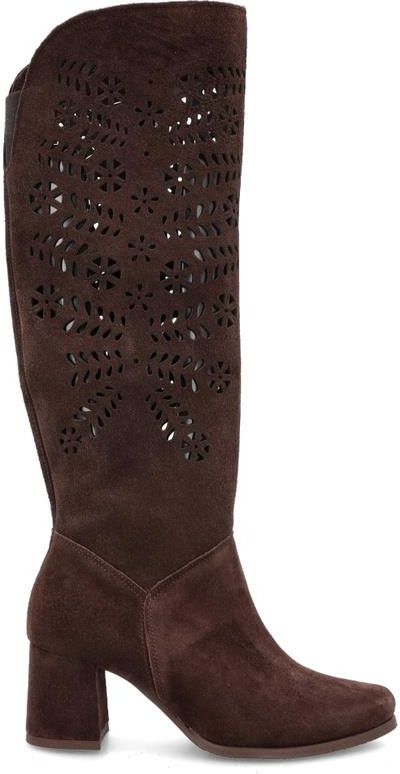 Stylowe ażurowe kozaki - TYMOTEO L1001 CZEKOLADOWE Myszków