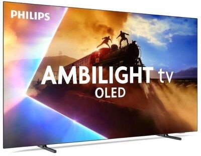 Zanurz się w tym, co kochasz. Telewizor Ambilight. Telewizory z funkcją Ambilight to jedyne telewizory z wbudowanym oświetleniem LED za ekranem, które reaguje na to, co oglądasz, zanurzając Cię w aureoli kolorowego światła. Twój telewizor wydaje się większy, a Ty bardziej zagłębiasz się w swoje ulubione programy, filmy i gry. Szczegółowość i głębia. Realistyczny obraz OLED. Realistyczny obraz Twojego telewizora 4K (UHD) OLED Ambilight zawsze wygląda znakomicie, nawet gdy jest oglądany pod kątem. Czerń jest zawsze czarna, a nie szara, a każdy detal widać zarówno w cieniach, jak i w jasnych partiach kadru. Obsługiwane są wszystkie najważniejsze formaty HDR — poczujesz pełną moc każdej sceny. Niezależnie od tego, co oglądasz, obraz jest realistyczny. Procesor P5 z technologią AI. Procesor P5 Philips z technologią AI zapewnia obraz tak realistyczny, że czujesz się jego częścią. Zaawansowany algorytm AI przetwarza obrazy w sposób podobny do ludzkiego mózgu. Bez względu na to, co oglądasz, zapewnia on wszystkie szczegóły, kontrast, bogate kolory i płynny ruch. Kinowe doznania przy każdym oglądaniu i graniu Oglądaj z zapartym tchem! Dzięki Dolby Vision zobaczysz wizję filmu, którą chciał Ci przedstawić reżyser, koniec z niezadowalającymi scenami, które są zbyt słabo oświetlone! Od filmów po gry, przywitaj się z każdym wspaniałym szczegółem. Immersyjna technologia dźwięku przestrzennego Kompatybilność z Dolby Atmos i DTS:X wynosi możliwości dźwiękowe tego telewizora na wyższy poziom, w każdym pomieszczeniu. Najnowsze filmy, gry, największe wydarzenia sportowe: dzięki efektom dźwiękowym, rozbrzmiewającym nad Tobą i wokół Ciebie, poczujesz się, jakbyś był(-a) w samym środku akcji. Total Gaming Solution. Ekscytująca rozgrywka dla każdego gracza HDMI 2.1, natywna częstotliwość odświeżania 120 Hz i bardzo niskie opóźnienie wejścia. Zarówno dla gry niezależnej czy tytułu AAA, telewizor Ambilight zapewnia parametry, których potrzebujesz, aby grać tak, jak chcesz! Aby uzyskać jeszcze większą kontrolę, Game Bar 2.0 pozwala dostosować Twój sposób gry oraz możesz podłączyć kontroler Bluetooth do grania w chmurze. System operacyjny Titan OS. Znajdź wszystko z łatwością. Nasza inteligentna platforma systemu operacyjnego Titan OS pozwala szybko i łatwo znaleźć to, co kochasz. Możesz kontynuować oglądanie serialu bezpośrednio z ekranu głównego, otrzymywać sugestie z najlepszych serwisów streamingowych i tworzyć listy filmów do obejrzenia. Możesz także przeorganizować ekran główny, aby ulubione aplikacje i kanały znajdowały się dokładnie tam, gdzie chcesz. Łączność z inteligentnymi sieciami domowymi, asystentami głosowymi i nie tylko Pełna kompatybilność z systemami Matter ułatwia integrację telewizora 4K Ambilight z istniejącą siecią inteligentnego domu. Za pomocą pilota do telewizora można również sterować dekoderem telewizji satelitarnej lub kablowej i aktywować wbudowaną aplikację Alexa. Telewizor jest również kompatybilny również z inteligentnymi głośnikami Google oraz Apple AirPlay. Przemyślana konstrukcja i odpowiedzialne opakowanie Zgrabna konstrukcja wygląda elegancko w każdym pomieszczeniu — Ambilight tworzy hipnotyzujące nastrojowe oświetlenie, gdy ekran jest wyłączony. Smukły pilot do telewizora jest wykonany z plastiku pochodzącego z recyklingu, nasze opakowanie wykorzystuje karton z recyklingu z certyfikatem FSC, a wkładki są drukowane na papierze z recyklingu.