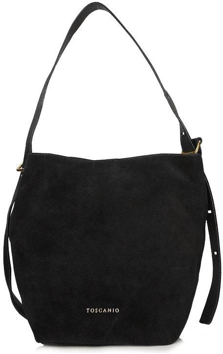 Torebka skórzana Toscanio G100 czarny – stylowy worek w ponadczasowym wydaniu Toscanio G100 to torebka typu worek wykonana z miękkiej skóry zamszowej, która wyróżnia się naturalną elegancją i subtelnym charakterem. Jej prosta, lekko luźna forma sprawia, że jest niezwykle wygodna i praktyczna w codziennym użytkowaniu. To model, który łączy modny design z funkcjonalnością, idealny dla kobiet ceniących styl i komfort. Naturalna elegancja i klasyczny kolor Czarna wersja Toscanio G100 zachwyca ciepłym odcieniem i miękką fakturą skóry zamszowej. To kolor, który doskonale komponuje się z garderobą w naturalnych barwach, a jednocześnie wprowadza nutę wyrafinowania do codziennych stylizacji. Torebka jest uniwersalna i ponadczasowa – sprawdzi się zarówno na co dzień, jak i w bardziej eleganckich zestawach. Praktyczne wnętrze i wygoda noszenia Model G100 zamykany jest na magnes w złotym kolorze, co zapewnia szybki dostęp do zawartości. Wnętrze zostało wykończone podszewką z tkaniny i wyposażone w jedną przestronną komorę oraz dodatkową kieszeń wewnętrzną, idealną na telefon, klucze czy drobne akcesoria. Skórzany pasek o długości ok. 75 cm umożliwia wygodne noszenie torebki na ramieniu w swobodnym, casualowym stylu. Najważniejsze cechy modelu G100 Materiał: miękka skóra naturalna zamszowa – elegancja i trwałość. Kolor: czarny– uniwersalny i ponadczasowy. Zapięcie: magnes w złotym kolorze – szybki i wygodny dostęp. Wnętrze: jedna komora z podszewką i kieszenią wewnętrzną na drobiazgi. Pasek: skórzany, o długości 75 cm – do noszenia na ramieniu. Dla kobiet ceniących wygodę i styl Toscanio G100 w ciemnobrązowym kolorze to torebka, która łączy w sobie funkcjonalność i elegancki design. Dzięki miękkiej skórze zamszowej oraz swobodnej formie worka sprawdzi się idealnie w codziennych stylizacjach, jednocześnie dodając im klasy i ponadczasowego charakteru. Sprawdź także inne torebki damskie dostępne w naszym sklepie i poznaj kolekcję marki Toscanio.