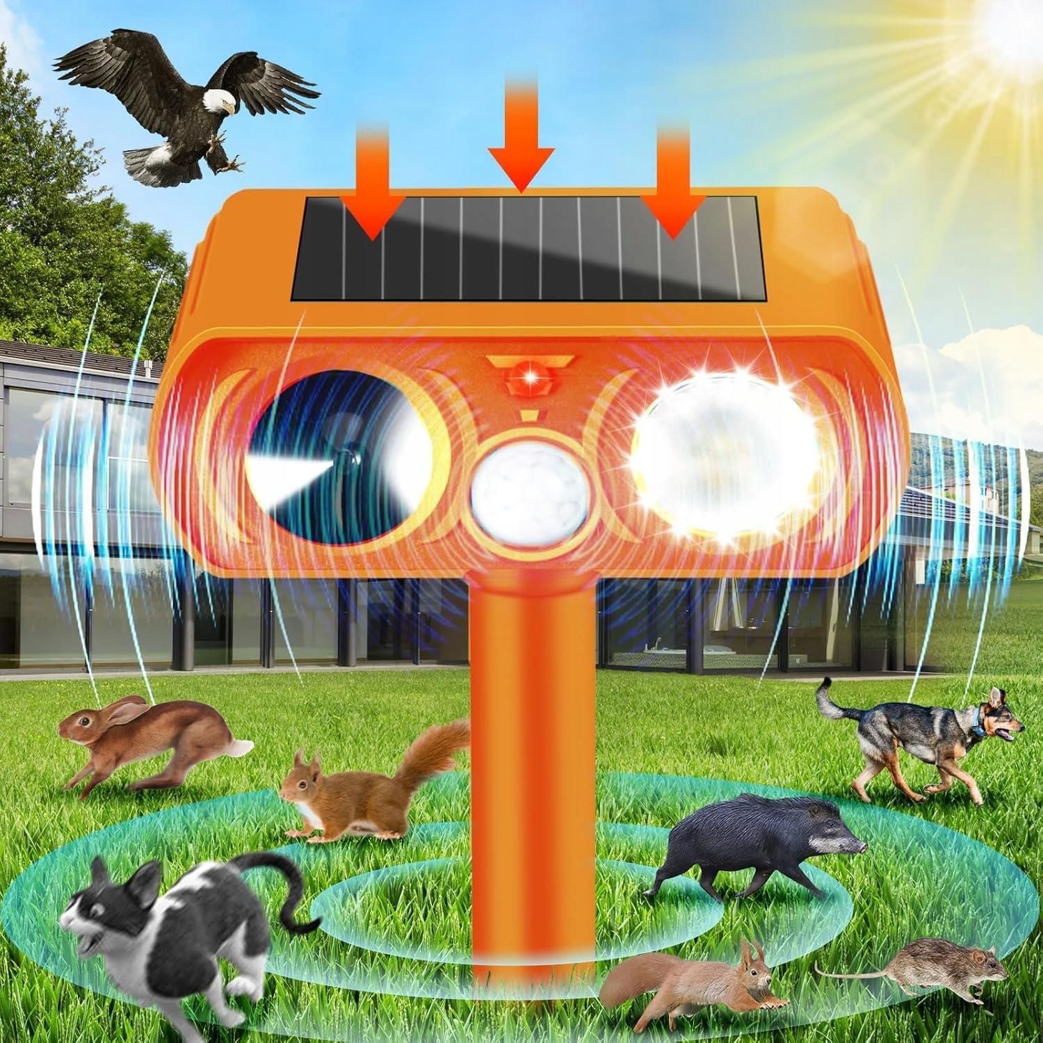 Ultradźwiękowy Odstraszacz Zwierząt Do Ogrodu Z Czujnikiem Ruchu Myszków