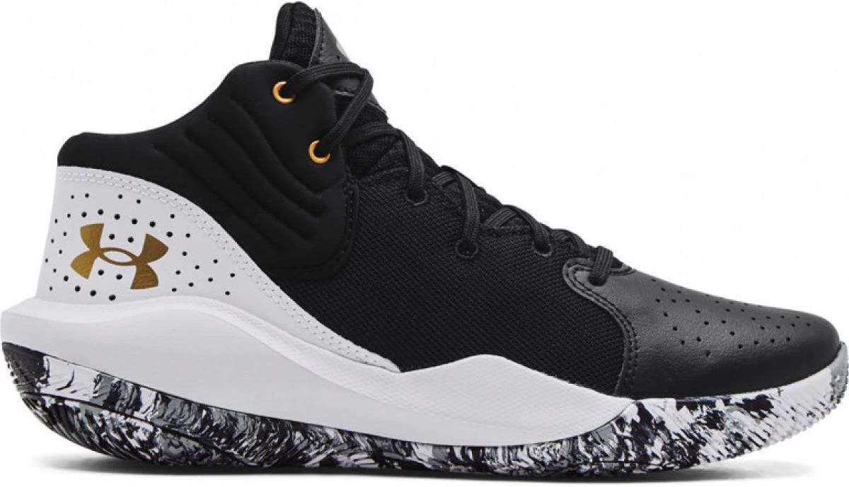 Męskie buty koszykarskie Jet 21 Under Armour Klasyczny system wiązania pozwoli precyzyjnie dopasować obuwie do każdego kształtu stóp. W szybki i łatwy sposób przytwierdzisz obuwie do swoich stóp i poczujesz się pewniej, gdy będziesz miał je na nogach. Doskonale nadadzą się podczas wyczerpującego treningu, czy meczu - posiadają silne właściwości oddychające, które pozwolą na uczucie świeżości oraz suchości przez cały czas użytkowania. Dodatkowo, podczas ruchu doskonała amortyzacja zagwarantuje, że każdy Twój krok, czy odbicie będzie przyjemnością. Gumowa podeszwa zapewni także przyczepność na płaskiej nawierzchni, dzięki czemu będziesz mógł poczuć się pewniej i swobodniej na boisku. Podczas produkcji wykorzystano wysokiej jakości materiały, które gwarantują trwałość oraz solidność. Możesz mieć pewność, że nawet po wyczerpujących i długich treningach, buty nadal będą wyglądać doskonale. Będziesz mógł się nimi cieszyć przez długie sezony - o nic nie będziesz musiał się martwić. Ciekawy design modelu sprawi, że nikt nie przejdzie obok Ciebie obojętnie, gdy będziesz miał je na nogach - na boisku zostaniesz od razu dostrzeżony. Logo marki podkreśli wysoką jakość produktu i ożywi Twojego sportowego ducha.
