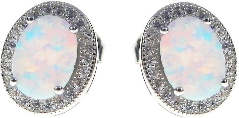 Valerio Owalne Kolczyki Z Opalem I Cyrkoniami Owal Opal Srebro 925 V012 Myszków