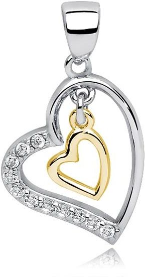 Elegancki wykonany z rodowanego srebra wisiorek w kształcie serca wysadzany białymi cyrkoniami, zdobiony małym pozłacanym serduszkiem, model Z0676CGR.
