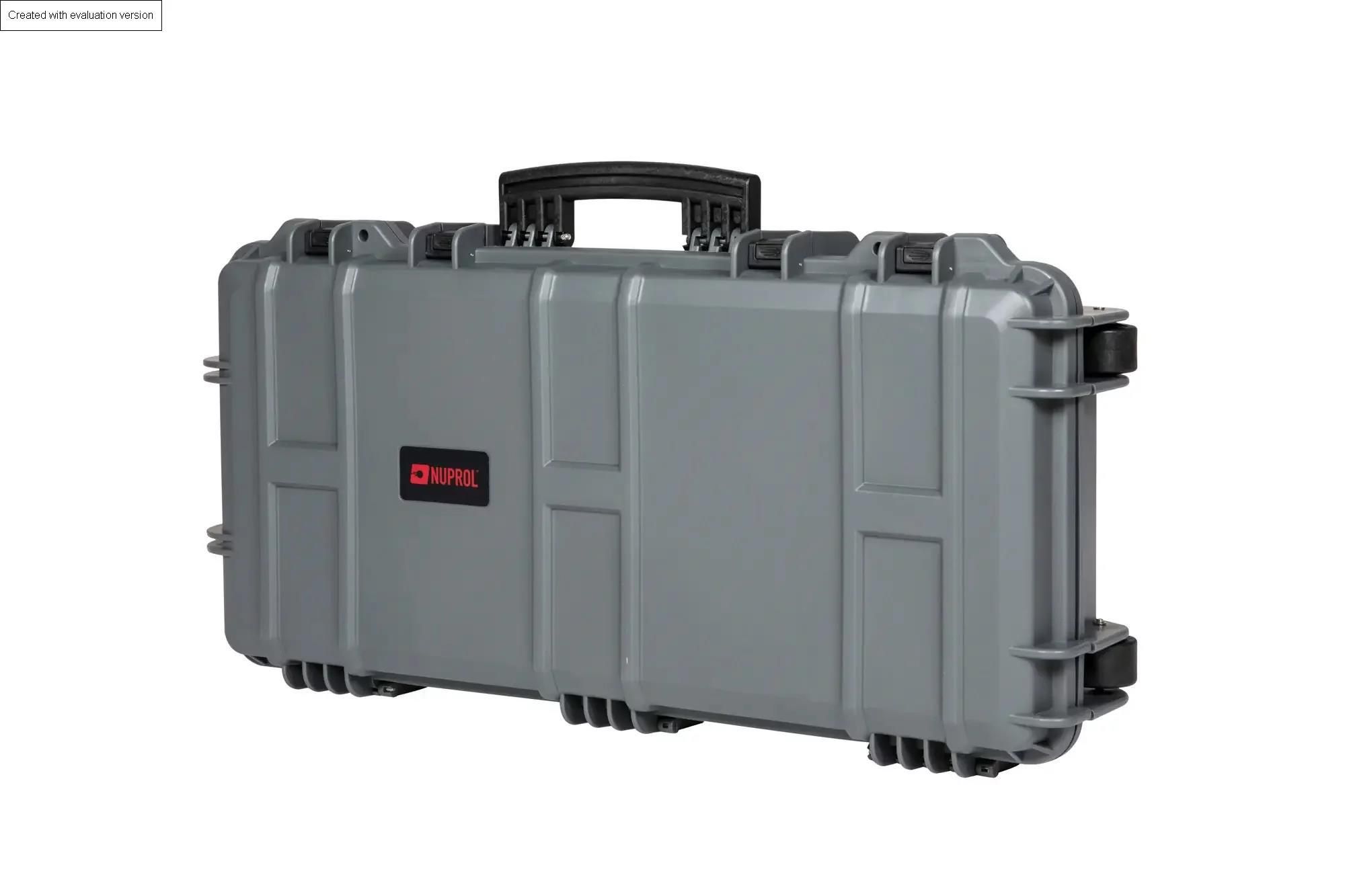 Walizka transportowa NP Medium Hard Case PnP Wykonana z wytrzymałego tworzywa sztucznego walizka transportowa o wymiarach 800x400x170mm pozwalająca na bezpieczne transportowanie broni o długości do 740mm. W środku, prócz standardowej pianki pełniącej rolę wyściółki zastosowano specjalną piankę Pick and Pluck która umożliwia idealne dopasowanie zawartości do walizki. Aby dopasować piankędo zawartości należy oderwać docięte kwadraciki na wymagany kształt. Produkt został wyposażony w 4 zamknięcia oraz 2 otwory na kłódki zabezpieczające. Zastosowanie kółek walizkowych oraz 2 uchwytów znacznie ułatwia transport.