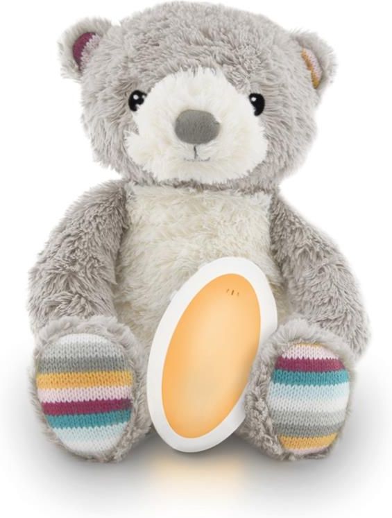 Zazu BRUNO Usypianka Miś Numer kat. ZA-BRUNO-01 Miś BRUNO to wyjątkowe urządzenie, które ułatwi dziecku wyciszenie się i zaśnięcie. Relaksująca muzyka oraz stonowane ciepłe, pomarańczowe światło lampki nocnej uspakajają i przeganiają dziecięce lęki. Usypianka odgrywa 7 różnych melodii: szszsz szzz, bicie serca, biały szum, muzykę relaksacyjną i 3 kołysanki. Dodatkowo ma też funkcję nagrywania głosu (do 30 s.). Rodzic może zarejestrować słowa kierowane do dziecka lub śpiewaną przez siebie kołysankę. Może też wybrać jeden z 3 poziomów głośności odtwarzania dźwięków. Po 20 min. muzyka i światło wyłączają się automatycznie, ale dzięki funkcji czujnika płaczu ostatnie ustawienia mogą aktywować się ponownie, gdy dziecko zacznie płakać. Specjalna pętelka na rzep pozwala powiesić usypiankę nad łóżeczkiem, wózkiem lub fotelikiem samochodowym. Specyfikacja - lampka nocna dla dzieci z ciepłym pomarańczowym światłem, - usypianka z 7 melodiami: szszsz szzz, bicie serca, biały szum, muzyka relaksacyjna i 3 kołysanki, - możliwość nagrywania własnego głosu (do 30 s.), - regulacja głośności – 3 poziomy, - automatyczne wyłączanie po 20 min., - cry sensor (czujnik płaczu), - pętelka na rzep do zaczepienia nad łóżeczkiem, wózkiem, fotelikiem samochodowym, - zasilanie na baterie 3xAAA (nie dołączono). Wymiary usypianki - wysokość 33 cm - szerokość 20 cm - długość 13 cm Wymiary opakowania - wysokość 24 cm - szerokość 16 cm - głębokość 14 cm ZAZU kids to holenderska marka. Jej założyciele Nynke Bakker i Sven van der Veen, rodzice 3 małych dzieci, połączyli siły w 2013 roku i stworzyli linię produktów dla dzieci. Charakteryzują się one nowoczesnym wzornictwem, a towarzyszy im troska o dobry i zdrowy sen dzieci i ich rodziców, która jest nadrzędnym celem marki.