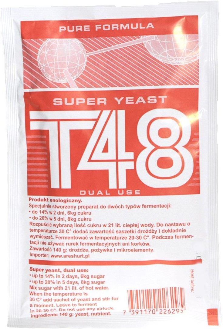 DROŻDŻE GORZELNICZE T48 /x10szt. oznaczenie seria T to skrót od TURBO. Seria drożdży T – to produkty o najlepszym stosunku ceny do jakości. Drożdże gorzelniane Super T48 to kolejny zamiennik słynnych drożdży spod znaku Coobra. Znajdują się w nim specjalnie wyselekcjonowane szczepy: - przefermentują …