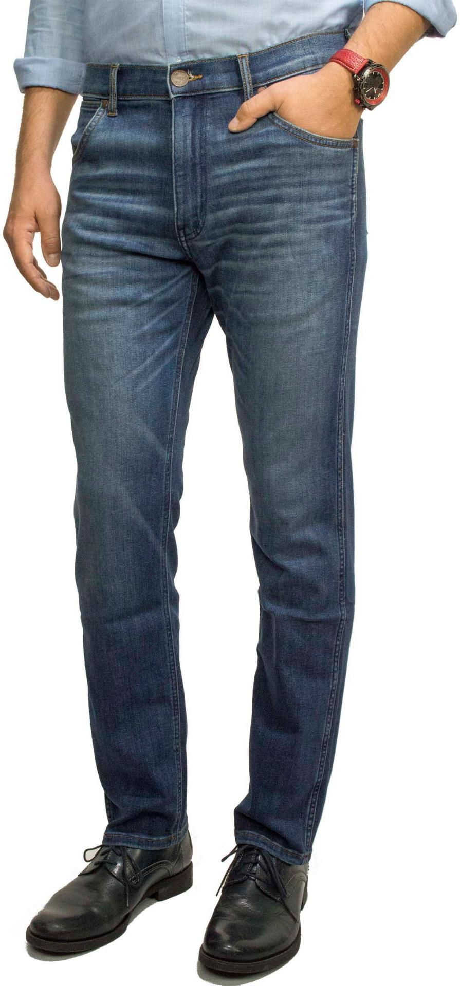 Kolor niebieski, z fantastycznym, typowo dżinsowym wytarciem. Uwagę zwracają ekstrawagancją, połączoną jednocześnie z ogromnym wyrafinowaniem. Perfekcyjne wykończenia i najwyższej jakości jeans, gwarantuje marka Wrangler. Tylna prawa kieszeń upiększona kultową skórzaną naszywką z grawerowanym logo Wrangler. Obszycia stebnowane mocnymi rudymi nićmi, podkreślają ten świetny krój i kolor spodni. O ile cenisz sobie jakość i lubisz się nieco wyróżnić, Koniecznie musisz je mieć! Bardzo uniwersalne - do marynarki, swetra, A także do koszuli, bluzy, czy t-shirtu. Zarówno do pantofli, obuwia sportowego, jak i do butów zimowych. Jakkolwiek, nosząc je przez cały dzień, to dzięki świetnemu krojowi, A także odpowiedniej ilości streczu, będziesz się czuł bardzo komfortowo.