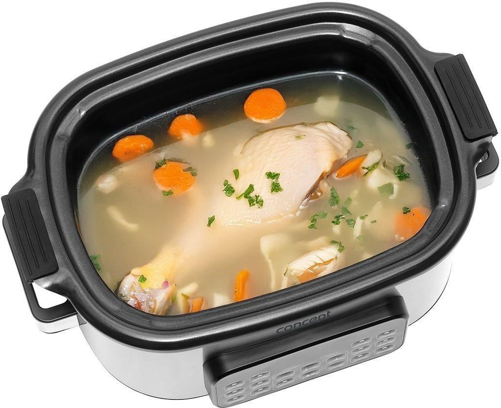 Inteligentne gotowanie bez wysiłku - w domu i na działce Multifunkcyjny wolnowar Concept CK9000 to praktyczny pomocnik, który oszczędza czas, energię i miejsce na kuchennym blacie. Oferuje 10 automatycznych programów, w tym wolne gotowanie i gotowanie na parze, dzięki czemu z ... (zobacz więcej)