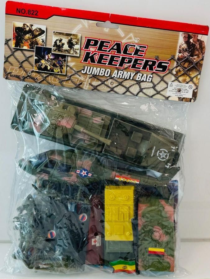 Zestaw wojskowy - żołnierzyki i pojazdy militarne 0105Przenieś się w świat militarnych przygód z dużym zestawem wojskowym Peace Keepers – Jumbo Army Bag! Ten kompletny pakiet pojazdów i akcesoriów militarnych zapewni długie godziny ekscytującej zabawy każdemu małemu miłośnikowi wojska.Zawartość …