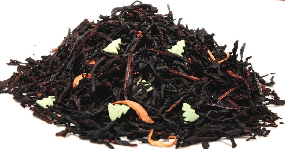 herbata czarna cejlon,kwiat pomarańczy, zawierająca zielone cukrowe choineczki,aromat.
