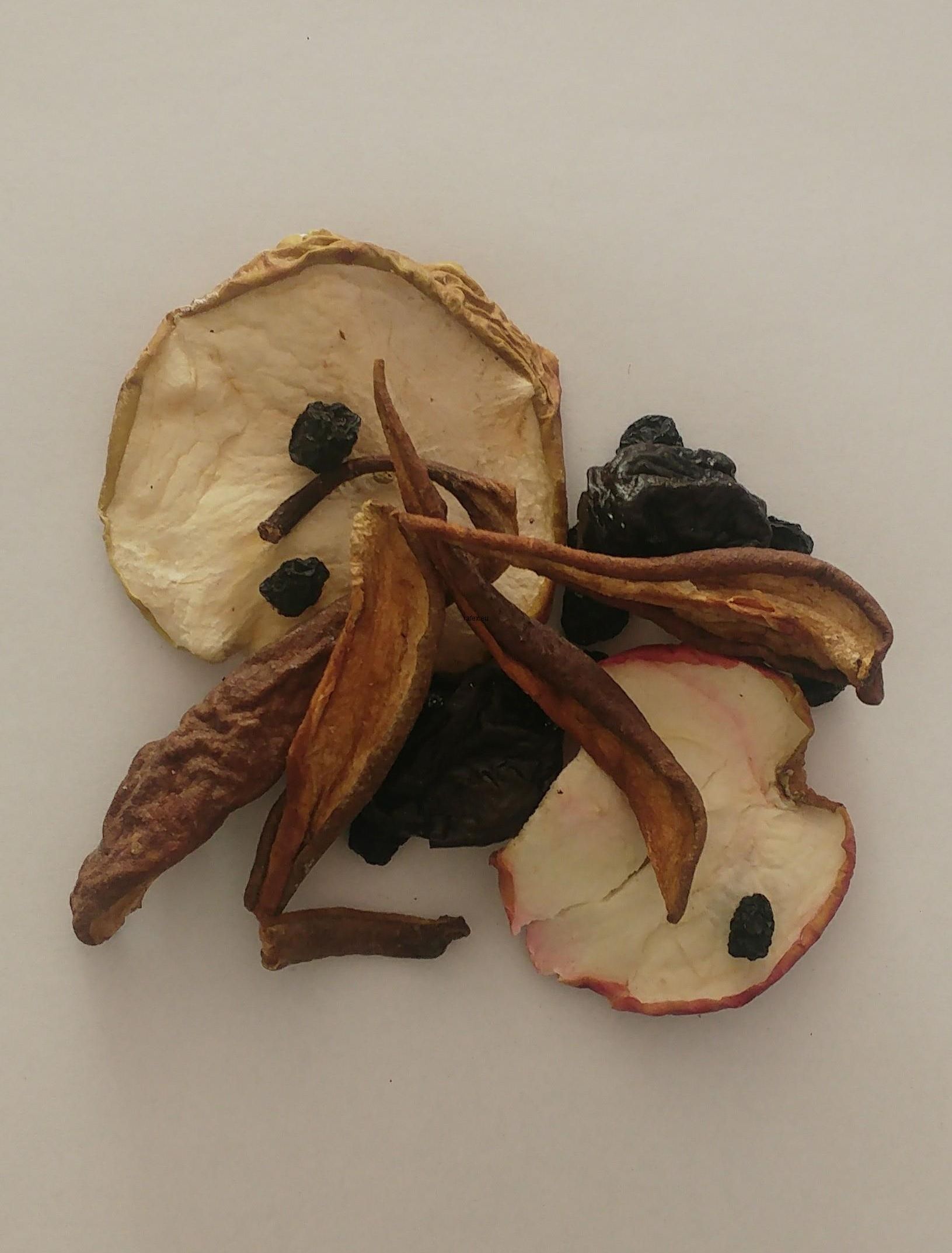 Susz wigilijny w poręcznej, dwustugramowej torebce, to idealny pomysł na prezent dla wszystkich miłośników świątecznej atmosfery, małych i dużych. Bez względu na wiek, bo świąteczną radość odczuwają zarówno dzieci, jak i dorośli. Połączenie jabłka, śliwki, aronii oraz gruszki gwarantuje eksplozję doznań smakowych – iście świąteczną. To produkt dla tych, którzy chcą mieć przy sobie atmosferę świąt nie tylko od święta, ale przez cały rok. Produkt dostępny w opakowaniu 200 g.