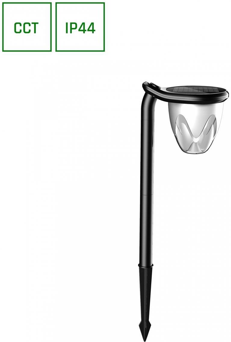 Lampa solarna SOLARA BRILO z możliwością zmiany barwy światła (CCT), o mocy 1 W. Dzięki możliwości zmiany temperatury barwowej (CCT) zakresie od 3000K do 6000K możemy dopasować barwę światła w zależności od potrzeb i preferencji. Jest wyjątkowo oszczędne w eksploatacji - ich moc to 1 W. Posiada wysoką klasę szczelności IP44, dzięki czemu doskonale sprawdzi się w miejscach o podwyższonej wilgotności. Funkcja CCT daje możliwość zmiany temperatury barwowej światła (3000/4000/6000K). DANE PRODUKTOWE kolor: czarny napięcie: 3,7V moc: 1W zużycie energii: 1Kwh/1000h trwałość: 17000h zakres temperatur pracy: od -20 do 40 st. C stopień ochrony: IP44 barwa świtała: CCT strumień świetlny: 100 lm (360) st. temp. barwowa: 3000/4000/6000K materiał obudowy: ABS do użytku: zewnętrznego sposób montażu: gruntowy / natynkowy wymiary: 150x180x135 mm CCT: dzięki funkcji zmiany temperatury barwowej w zakresie od 3000 – 6000K (za pomocą przycisku na obudowie) zawsze możemy dopasować barwę światła do roślin, architektury której piękno chcemy podkreślić DIMM: oprawa posiada możliwość zmiany natężenia światła: 100%, 60%, 30% oraz całkowite wyłączenie oprawy W trybie AUTO czas świecenia wynosi 12 godzin, czas do pełnego naładowania do 8 godzin