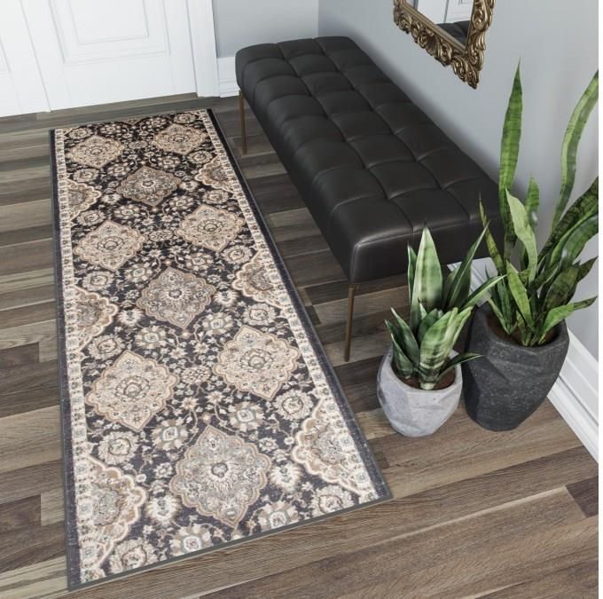 Chodnik Dubaj 00.757c anthratice szer. 70 cm klasyczny kwiatowy na metry gęsty obszyty (1szt = 1mb) Namysłów