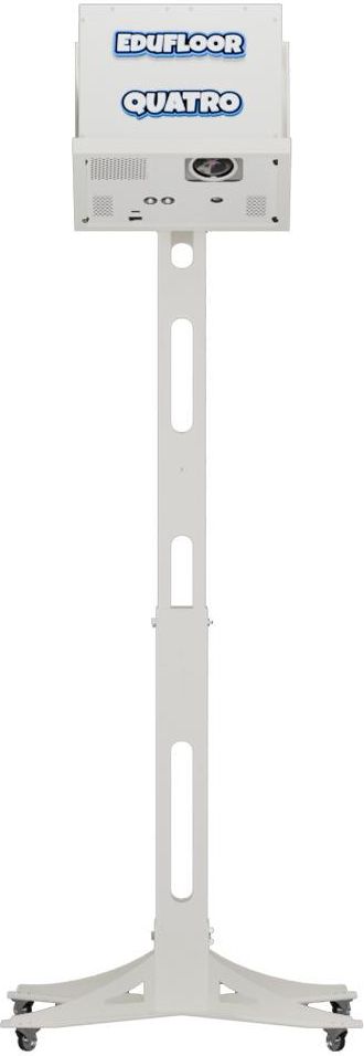 EduFloor Quatro Mobilna podłoga interaktywna i ściana w jednym urządzeniu Mobilność EduFloor QUATRO to zaawansowane mobilne urządzenie interaktywne, które można łatwo przenosić dzięki specjalnie zaprojektowanemu stojakowi. Solidna konstrukcja zapewnia bezpieczeństwo podczas zabawy, a funkcje pozwalają na idealne dostosowanie obrazu do rozmiarów pomieszczenia. Instalacja na stojaku jest niezwykle prosta i nie wymaga specjalistycznej wiedzy. Przy wadze poniżej 6 kg, EduFloor QUATRO to najlżejsze rozwiązanie w swojej kategori! Dzięki nowoczesnej technologi urządzenie minimalizuje cienie użytkowników, co sprawia, że mogą oni swobodnie korzystać z jego funkcji bez wzajemnego przeszkadzania sobie Interaktywna ściana EduFloor QUATRO może pełnić funkcję interaktywnej ściany. Wystarczy zmienić kąt ustawienia urządzenia, dostosować odległość i wielkość obrazu, a następnie szybko skalibrować. Każdynauczyciel lub opiekun może to zrobić bezspecjalistycznych szkoleń. Dzięki pakietowi WALL,urządzenie oferuje aplikacje obsługiwane za pomocąplastikowych piłek Montaż na suficieUrządzenie może być również montowane na suficie, umożliwiając tradycyjne użytkowanie jako interaktywna podłoga. W zestawie znajduje się wieszak, który ułatwia instalację. EduFloor QUATRO działa w wielu trybach: podłoga, ściana, mobilnie oraz jako interaktywny stół. Kalibracja odbywa się bardzo prosto, za pomocą pilota radiowego, co zapewnia szybkie dostosowanie do różnych warunków. Urządzenie zawiera 6 standardowych pakietów, co stanowi największą liczbę aplikacji w swojej klasie Interaktywny stół EduFloor QUATRO można także przekształcić w stół interaktywny – wystarczy ustawić urządzenie nad dowolnym stołem i skalibrować obraz. W tym trybie interakcja odbywa się za pomocą ruchu rąk, co sprawia, że jest to idealne rozwiązanie do pracy z osobami starszymi. EduFloor QUATRO oferuje aż 4 różne sposoby użytkowania w jednym urządzeniu