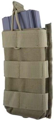 Uszyta z wytrzymałego nylonu uniwersalna, pojedyncza ładownica otwarta typu shingle. Mieści jeden magazynek typu M4/M16 (STANAG) / AK / G36. Magazynek jest od góry zabezpieczony przed wypadnięciem elastyczną linką shock-cord. Jest kompatybilna z systemem montażowym MOLLE, co pozwala na jej zamocowanie na wszelkiego typu kamizelkach, pasach i plecakach. Dane techniczne: Wykonanie: Nylon Pojemność: 1 magazynek Waga: 70 g Kolor: Olive Mocowanie: MOLLE