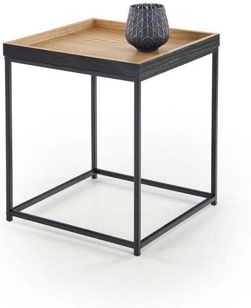 Ława YAVA Nowoczesna ława YAVA jest idealnym rozwiązaniem dla osób ceniących proste, funkcjonalne, a zarazem eleganckie rozwiązania. Ława stanowić będzie znakomite uzupełnienie aranżacji nowoczesnego salonu, dodając mu szyku i klasy. Przypadnie do gustu osobom szukającym dla swoich wnętrz rozwiązań nowoczesnych i niebanalnych, które przyciągają spojrzenia. Ława YAVA wykonana została z płyty MDF + okleina naturalna w kolorze Dąb Naturalny oraz stali malowanej proszkowo na kolor Czarny. Wymiary ławy: Szerokość: 42 cm Głębokość: 42 cm Wysokość: 49 cm max. udźwig.: 20 kg