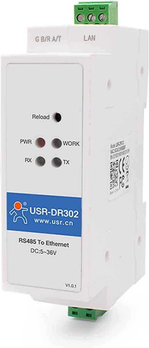 USR-DR302 to przemysłowy media konwerter z RS485 na LAN w obudowie do montażu na szynie DIN. Urządzenie zapewnia przeźroczystą transmisję danych. Obsługuje protokół Modbus RTU oraz TCP IP. Uwaga: Zestaw bez zasilacza i przewodu. Najważniejsze cechy: 1x RS485 1x Port Ethernet WAN/LAN Zasilanie 5-36V - gniazdo zasilacza (5,5/2,1) + przemysłowe gniazdo zasilania Obsługa DHCP, dynamiczny lub statyczny IP Konfiguracja poprzez WEBserver Modbus RTU / Modbus TCP IP httpd Client Tryby pracy: TCP Server, TCP Client, UDP Client, UDP Server, Wsparcie USR-VCOM - wirtualny port COM na PC Windows USRIOT_Cloud Heartbeat Sprzętowy Watchdog brak zasilacza i przewodu w zestawie USR-DR302Work Voltage DC 5.0~36.0 V Work Current 130mA@5V Ethernet Port RJ45,10/100Mbps Serial Port Baud rate 600-460.8K(bps) Serial Port 1x RS485 Network Protocol TCP/IP, UDP, ARP,ICMP,IPV4 IP Type Static IP,DHCP DNS Support Configuration Software, Web-page, AT command Work Mode TCP Server/TCP Client/ UDP Server/UDP Client Modbus RTU to TCP Similar RFC2217 Support httpsd Client Support TCP Server Connection Support to connect max 8 TCP client Network Caching Send: 6Kbyte, Receive:4Kbyte Serial Port Caching Receive: 2Kbyte Average Transmission Delay <10ms> Software VCOM, USRIOT_Cloud, Setup software, test proforma Packaging Mechanism 4 bytes package time 1024 bytes package length Certificate CE, RoHs, FCC Grade IP30, 1.5KV Size 71 x 60 x 25 mm Work Temp -40~85c Storage Temp -40~105c Work Humidity 5%~95% RH Storage Temp 5%~95% RH