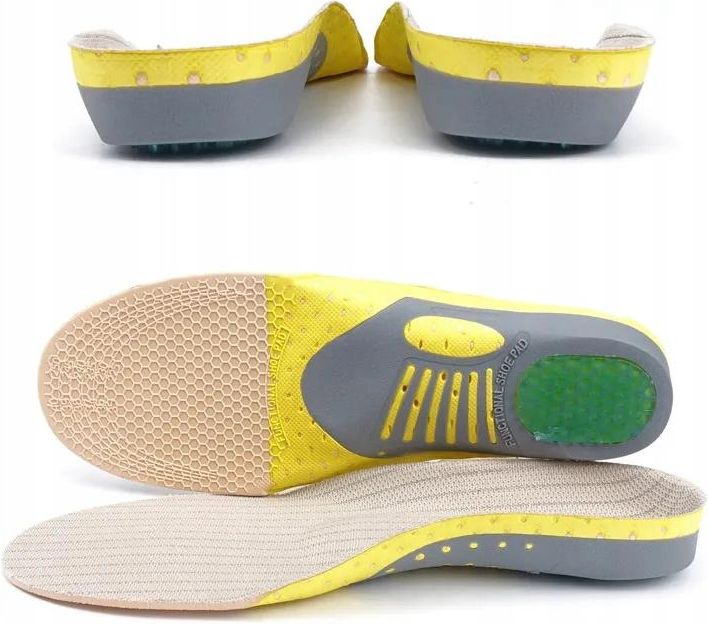 Wkładki Do Butów Na Płaskostopie Koślawość Supinujące Poprzeczne Podłużne Na tej aukcji przedstawiamy Państwu Wkładki do butów. Do wycinania rozmiary w zakresie 35-40. Wystarczy wyciąć ✂ wzdłuż linii, na taki rozmiar jaki potrzebujemy. Cena za 1 parę. WSKAZANIA: PŁASKOSTOPIE, KOŚLAWOŚĆ, SUPINACJA, PRONACJA Grubość: 4mm Innowacyjne wkładki ortopedyczne do butów, które posiadają warstwę piankową o grubości 4 mm. Warstwa piankowa skutecznie rozprasza do 95% wstrząsów generowanych podczas każdego kroku, zwłaszcza na twardych powierzchniach. Wkładki są zalecane w następujących przypadkach Jeżeli odczuwasz ból podczas biegania i chodzenia. W przypadku kontuzji ścięgna Achillesa oraz rozcięgna podeszwowego stopy. W przypadku zespołu ITBS. Jeżeli masz problemy z urazami rzepki. W przypadku nadmiernej pronacji. Dla osób z płaskostopiem. Dla osób z koślawością kolan i pięt. Jeżeli cierpisz na ostrogę piętową (wkładka posiada poduszkę amortyzującą pod piętą). Dla osób z nadwrażliwością stóp. Rdzeń wykonany z pianki poliuretanowej (PU), wraz z zaawansowaną konstrukcją termoplastycznego poliuretanu (TPU) zapewnia Stabilność Wsparcie Biomechaniczne wsparcie dla wysklepienia podłużnego i poprzecznego stopy Odpowiednie profilowanie tyłostopia i śródstopia Utrzymanie stopy w optymalnie biomechanicznej pozycji Większy komfort podczas chodzenia i biegania Zmniejszenie ryzyka powstania kontuzji Komfort i profilaktyka są kluczowymi cechami naszych wkładek do butów. Dzięki nim, obciążenia podczas chodzenia są zmniejszone, a mięśnie i więzadła są pobudzane do prawidłowej pracy. Wkładki te skutecznie redukują obciążenia zarówno podczas chodzenia, jak i biegania, a także łagodzą dolegliwości bólowe. Dodatkowo, nasze wkładki posiadają otwory wentylujące oraz warstwę wykonaną z bawełny, która odprowadza pot, zapewniając uczucie świeżości i komfortu. Co więcej, są one wyposażone w zaawansowaną technologię, która tłumi aż do 95% wstrząsów generowanych podczas każdego kroku.