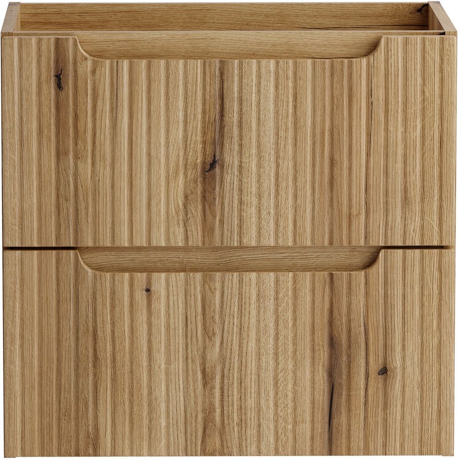 Szafka pod umywalkę 60 cm z dwiema szufladami z kolekcji Nova Coast Evoke przyciąga wzrok eleganckim minimalizmem, wyrazistymi pionowymi ryflowaniami i perfekcyjnie zintegrowanym podchwytem, który subtelnie podkreśla ponadczasowy charakter mebli. Ciepły odcień i naturalna struktura dekoru Dąb Coast …