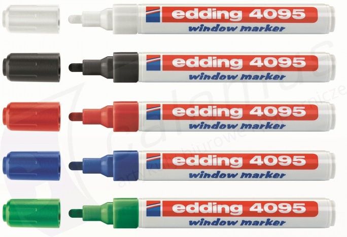 Markery kredowe Edding4095 markery na bazie matowej, płynnej kredy o neutralnym zapachu końcówka okrągła szerokość linii pisania 2-3mm do wykonywania napisów i zdobień na oknach, witrynach, ciemnych tablicach, lustrach i innych gładkich powierzchniach zmywalne przy użyciu mokrej ściereczki przepływ …