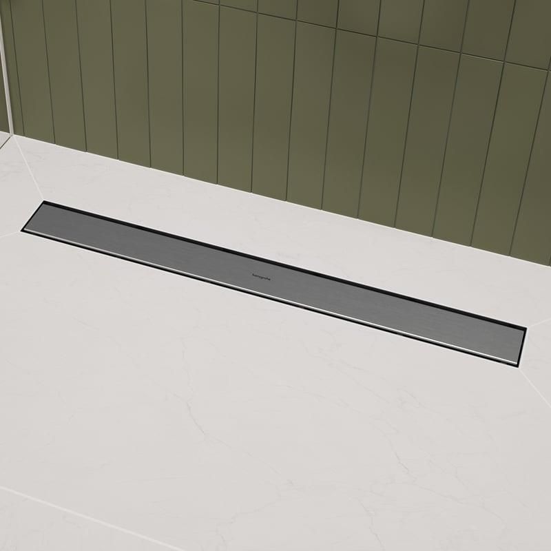 Hansgrohe RainDrain Go Kompletny odpływ liniowy 700, ruszt ozdobny/do wyłożenia płytkami, standardowy/niski składa się z: element zewnętrzny odpływu liniowego, Syfony, zestawy instalacyjny, wstępnie zamontowana membrana uszczelniająca, narzędzie do demontażu rusztu materiał rusztu: Stal szlachetna 304 (1.4301) materiał zestawu montażowego: Stal szlachetna 304 (1.4301) wysokość zamknięcia wodnego: 30 mm, 50 mm średnica przyłącza: DN40, DN50 położenie przyłącza odpływowego: poziomy powierzchnia łatwa w czyszczeniu obszar zastosowania: nowe budownictwo, renowacja obrotowy i regulowany korpus syfonu łatwy w czyszczeniu syfon narzędzie do demontażu rusztu umożliwia łatwy demontaż elementu zewnętrznego materiał syfonu: ABS typ montażu: montaż odsunięty od ściany możliwość wyłożenia płytkami od drugiej strony głębokość rusztu do wklejenia płytki: 12 mm możliwość wyboru pomiędzy dwoma syfonami, niskim lub standardowym nadaje się do odwodnienia pierwotnego i wtórnego RainDrain Go oferuje maksymalną swobodę dzięki możliwości instalacji w dowolnym miejscu podłogi w strefie prysznica, którą ten system odpływowy perfekcyjnie uszczelnia. Wysokość zestawu instalacyjnego można wyregulować, a w komplecie dostarczane są dwa syfony, do montażu płytkiego i standardowego. Dzięki temu RainDrain Go jest bezproblemowym rozwiązaniem odpływu w strefie prysznica walk-in w projektach mieszkaniowych i obiektowych. Ten odpływ liniowy cechuje duża wydajność odwodnienia wynosząca 39 l/min, łatwe czyszczenie i długowieczna jakość. Syfon i sitko na włosy można w razie potrzeby łatwo wyjąć i oczyścić. Do wyboru jest ozdobny ruszt w dwóch wariantach wykończenia, stal szlachetna szczotkowana i matowa czerń FinishPlus. Możesz również obłożyć drugą stronę płytkami dla efektu indywidualnej aranżacji. W ten sposób RainDrain Go wpisuje się w najróżniejsze, nowoczesne koncepcje projektowe.